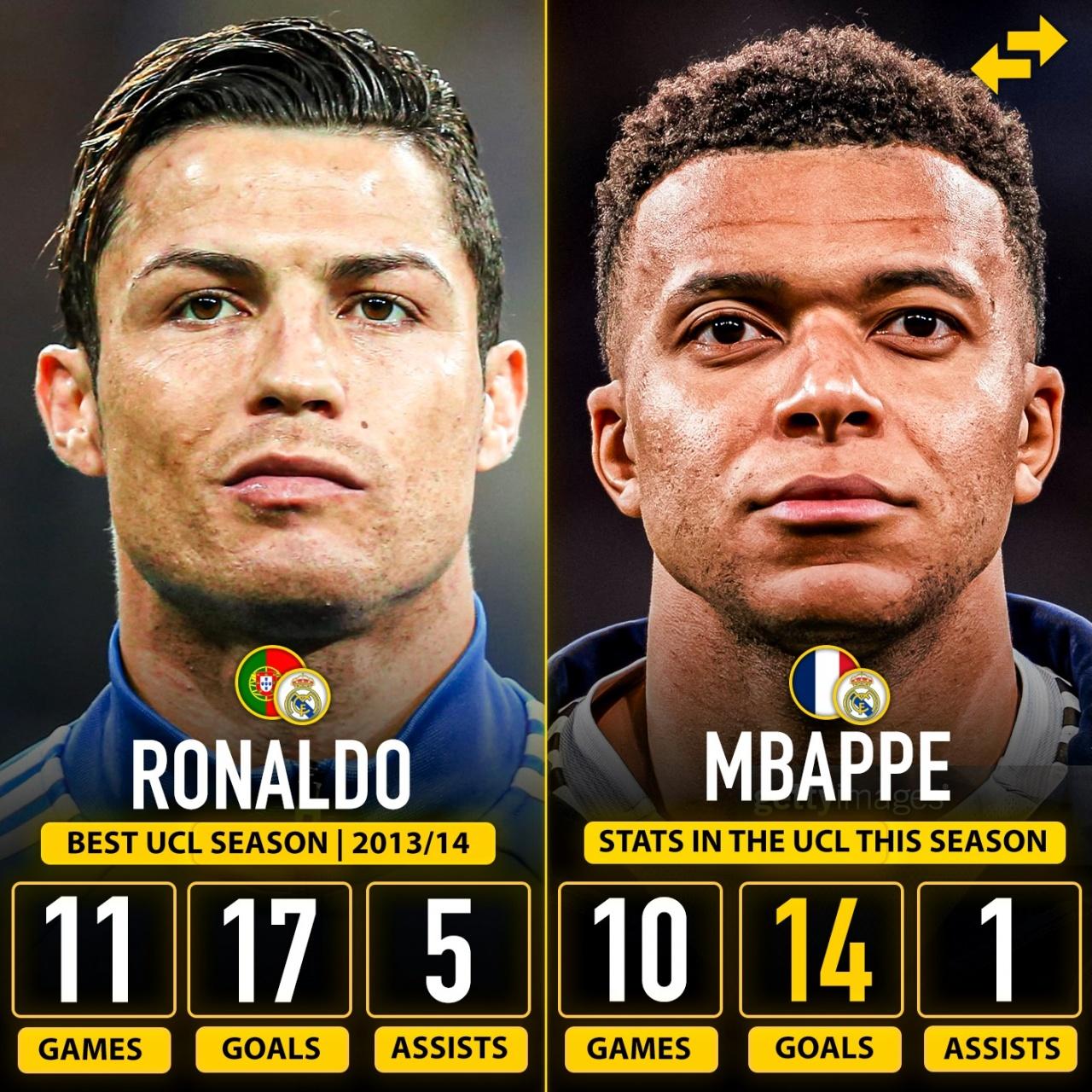 C罗11场17球5助的欧冠单赛季单赛季进球最多纪录有可能保住了。 姆巴佩10场14球1助,离17球的纪录还差3球! 如今姆巴佩的皇马在主场落后于拜仁,如若皇马被淘汰的话,姆巴佩就只有一场可以追上C罗的纪录了。起码要让姆巴佩踢进三球以上才能追平或创新纪录。 皇马翻盘,姆巴佩就有可能追上,毕竟还有四场球可踢! 就算是本赛季没有能破得了C罗的纪录,以后会有后来者破得了,而且不会用太久。 很简单,现在欧冠扩军了,比赛的场次参加了,能参赛的鱼腩增加了,这就为刷数据提供了条件。只是含金量自然不如场次更少,面对的对手更强的C罗所创下的纪录含金量大了。