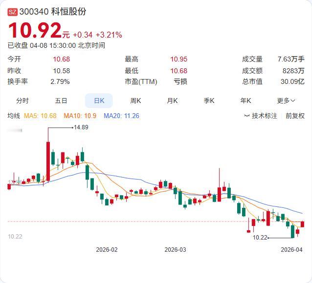 科恒股份年报揭晓:连续五年亏损,资不抵债警报未解! 2025年营收20.72亿元,同比下降2.39%,净亏损2.19亿元。截至年末净资产仅0.86亿元,资产负债率仍处高位。亏损额较业绩预告下限进一步扩大,正极材料毛利率虽有所修复,但智能装备板块因搬迁影响新增订单不足,持续拖累业绩。 定增输血与固态电池布局,成为公司“保壳”的两大关键变量。 控股股东格力金投拟以7.57元/股认购5亿元定增,用于补充流动资金。3月27日股东会已高票通过延长定增有效期议案。与此同时,子公司浩能科技与北京纯锂签署固态电池设备采购合同,切入全固态电池产线装备赛道。但此前因关联交易未及时审议、银行冻结未披露等问题,公司及高管刚被广东证监局出具警示函。 若2025年年报净资产为负,公司恐将再度被*ST。 从信披违规、关联方债权重组,到押注固态电池设备,科恒股份每一步都走在刀刃上。股价长期在7元附近徘徊,市场对“保壳”成功与否仍在观望。对投资者而言,当下的核心问题是:5亿定增能否顺利落地?固态电池设备订单能否转化为可持续收入?这两件事,才是科恒能否走出泥潭的真正胜负手。