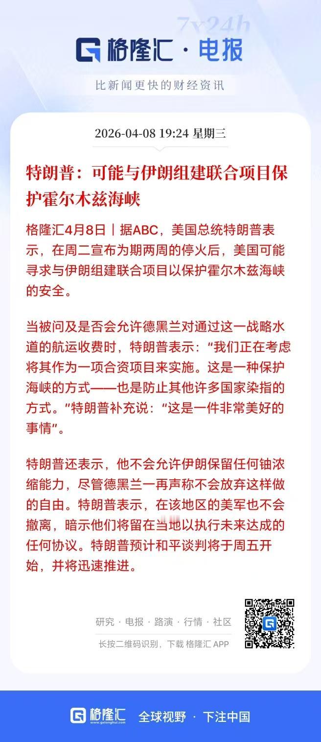 就问大家无不无语?川子竟然提议和朗哥一起对霍尔木兹海峡收费!这不是让人惊掉下巴吗? 今天川子表示,在周二宣布为期两周的停火后,美国可能寻求与伊朗组建联合项目以保护霍尔木兹海峡的安全。 当被问及是否会允许德黑兰对通过这一战略水道的航运收费时,川子表示:"我们正在考虑将其作为一项合资项目来实施。这是一种保护海峡的方式一-也是防止其他许多国家染指的方式。"川子还补充说:"这是一件非常美好的事情”。 大家看这个事情,是不是相当的无语? 美国和伊朗合伙来对霍尔木兹海峡过往船只收费,这怕是太阳打西边出来了吧?前一秒,双方还是你死我活的对手,现在就开始谈论一起来主宰霍尔木兹海峡,这不是无语了吗? 不得不说川子真的是个商人,这样也可以! 不过这么搞,只要伊朗同意,还真的有可能实现。伊朗收费能获得额外收入,重建家园,老美收费,卡住亚洲。 但是这么搞,东大能同意?沙特,阿曼,阿联酋等中东王爷们能同意?