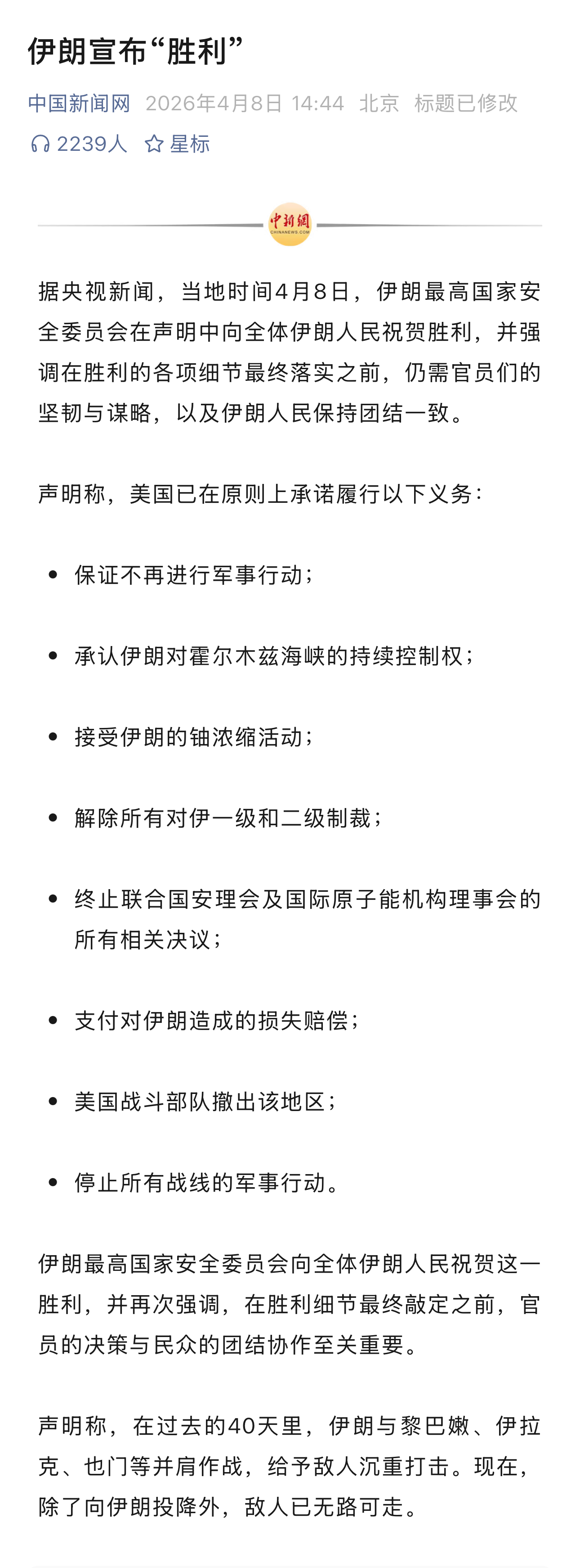 伊朗和美国同时宣布胜利