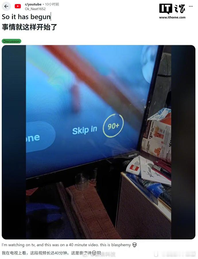 YouTube现90秒不可跳过广告据报道,多位网友在 Reddit 社区反馈,其 YouTube 电视应用出现长达 90 秒的不可跳过广告,这一时长远超官方规定的 30 秒上限。