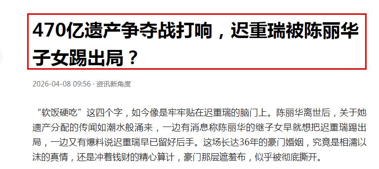 陈丽华去世后,关于遗产继承话题,迟重瑞一直被妖魔化,3个细节表明,迟重瑞对陈丽华是没有铜臭味的真爱。 在陈丽华生前,她与丈夫迟重瑞的事情,时常成为吃瓜群众热议的焦点,最可怜的还是迟重瑞,时常被扣上“软饭王”这样的头衔。 如今陈丽华去世了,关于迟重瑞能继承妻子多少遗产,成为全网关注的焦点,不过看了各种报道,似乎都对迟重瑞很不友好。尤其是迟重瑞被踢出局,无法继承遗产的报道此起彼伏。 其实有3个细节,能表明迟重瑞对陈丽华是绝对的真爱,这种爱情没有掺杂金钱利益。 第一个细节:迟重瑞巅峰时期放弃事业 要知道当时的《西游记》是家喻户晓的作品,迟重瑞不但演技好,最重要的是形象好,不愁事业的。如果他不退圈,肯定一直是娱乐圈当红的明星,自然是不差钱的。 第二个细节:没有生孩子 如果迟重瑞看中女方的财富,在与陈丽华结婚后,肯定会与对方生个孩子,有了孩子,就算自己没有继承财富的权利,孩子也有,但是二人一直没有生孩子。 第三个细节:二人结婚36年没有红过脸 现在的婚姻很脆弱,但是他们这对姐弟恋的婚姻却持续了36年,实在是很难得的,如果有伪装的成分,迟重瑞怎么可能伪装这么长时间。 话说如今的迟重瑞也是73岁的老人,而且还没有自己的孩子,所以他对继承妻子遗产的事情,应该也不感兴趣的。