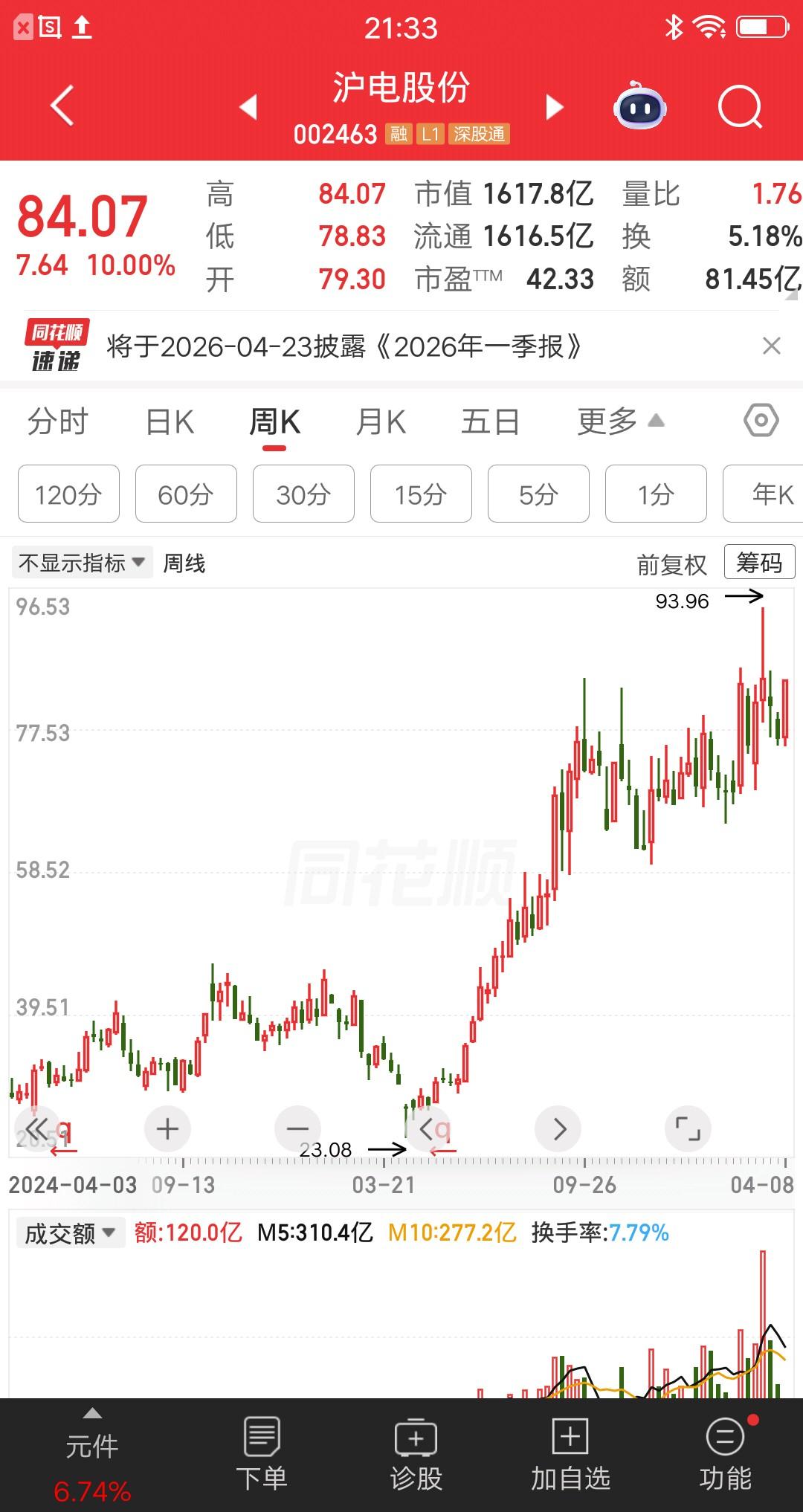 一位湖南的股民,以80元的价格买了32万沪电股份。当天股价就涨停了,但是他不会急着卖的,因为他准备拿中长线。身边的同事都劝他别去追高,他却有自己的逻辑。 公司在2号就说了,董事会同意斥资68亿,建设印制电路板项目。产品主要用于AI服务器和交换机等高端产品。管理层敢拿这么多钱投资扩产,必然是看到了广阔的市场,未来几年公司的营收和利润,还会明显增长。 根据多年的看盘经验,股价都是提前预期业绩的。在大A做价投,至少要有两三年的超前眼光,才能最大限度吃到牛市的涨幅。 从9.24到现在,沪电股份的涨幅不足两倍,和其他科技牛股比,泡沫并不大。 他晒图并分享了逻辑,很多股友点赞转发。 个人感觉,做价投最难的是执行力,这点在散户身上尤为明显。大家可以想想看,是不是都买到过大牛股,但是都早早卖飞了。简单的说,就是拿不住。 这位湖南的股友,判断正确只是成功的第一步,敢于执行到底,才能最终成功。