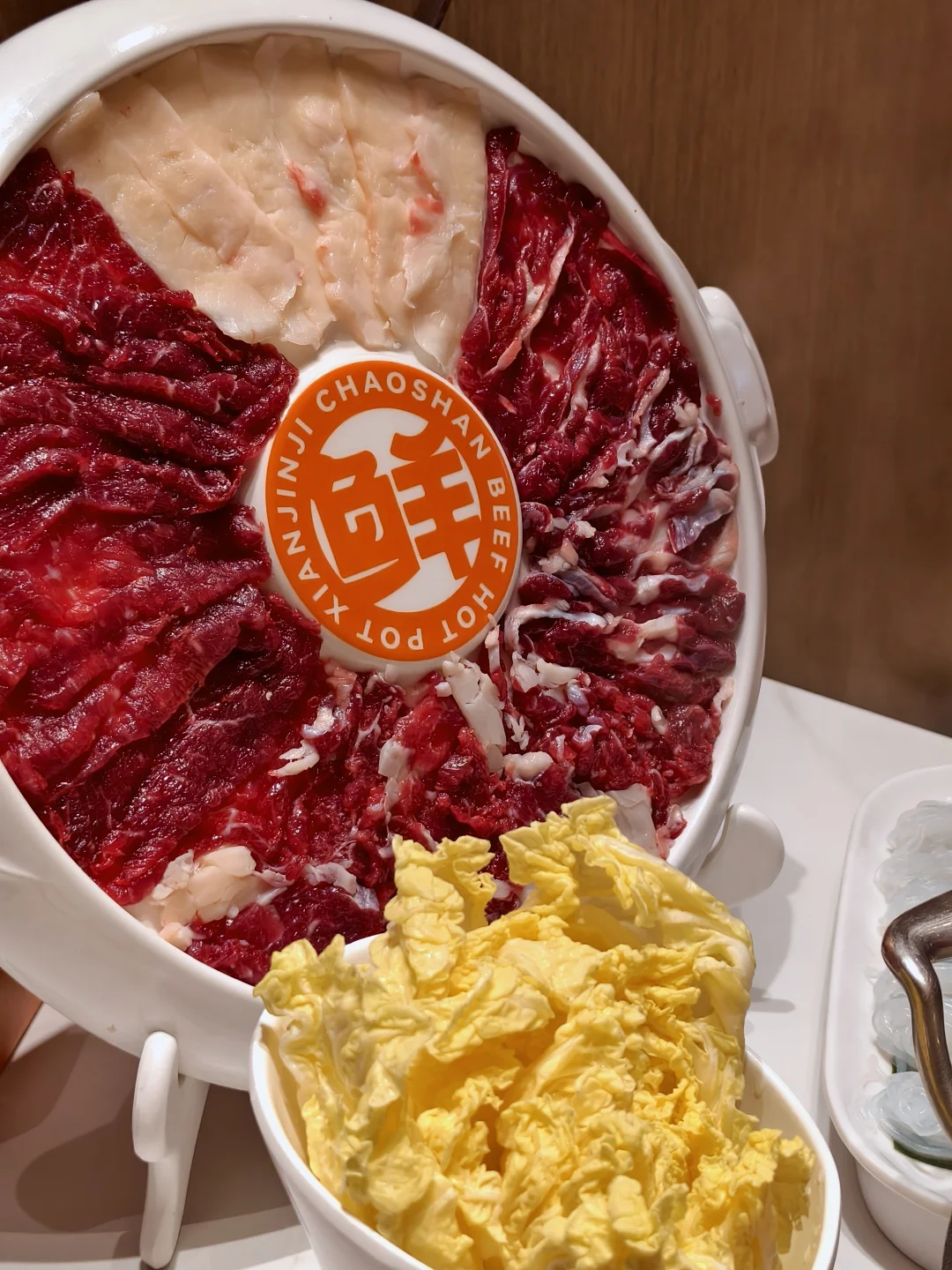 鲜切牛肉3小时到店,每天配送两次,云贵川3岁小黄牛,现点现切,挂盘不掉,吊龙涮6秒就能吃,嫩到爆汁!