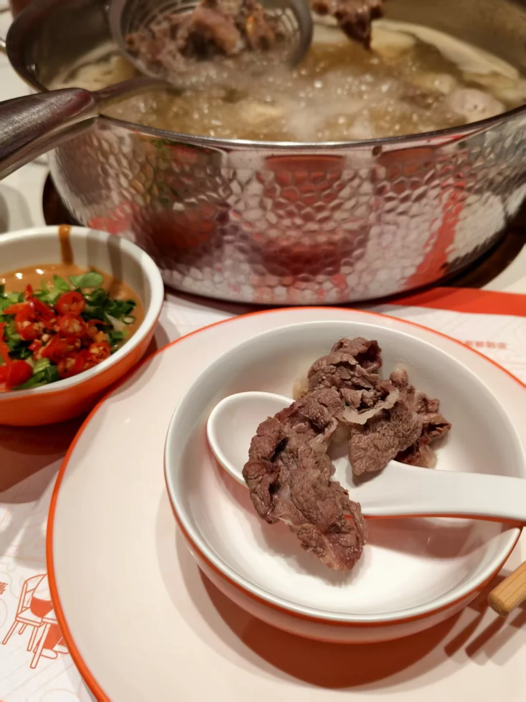 锅底是牛棒骨熬了6小时,清淡不油腻,吃完身上没味儿,下午上班完全ok!