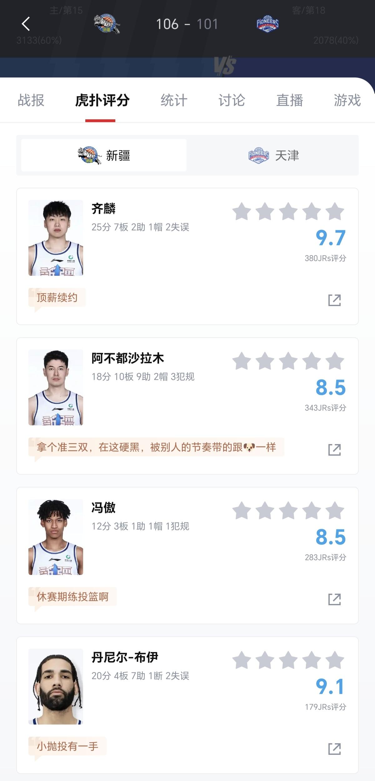 这布依总算是像个外援的样子了,今天总算赢得了,新疆男篮主教练姜正秀的信任,在整个第四节和加时赛中,一直待在场上。不能说他有多么力量的攻击能力,但他至少把球稳稳地控制在手中,剩下的四个国内球员就可以心无旁骛地做好防守和进攻,一点点把落后的局面扳回来了。 而实事上,今晚新疆男篮之所以最终赢球,就是这么一点一点地磨,一点一点地扣,一点一点地扳的,最终把天津男篮弄得没脾气后,一点一点险胜的!这才是真正的新疆精神,那种落后之后,永不放弃,坚韧不拔的精神。这场球胜利的意义,要比大胜对手几十分还有大,因为他让人们看见了,新疆男篮逆转比赛的信心和能力!