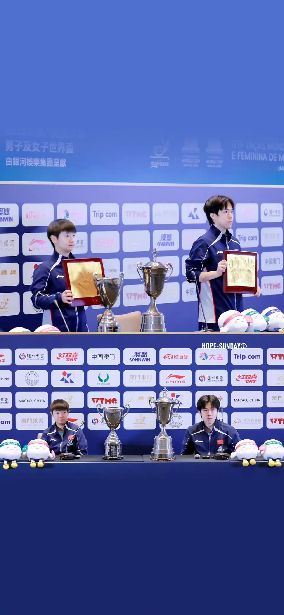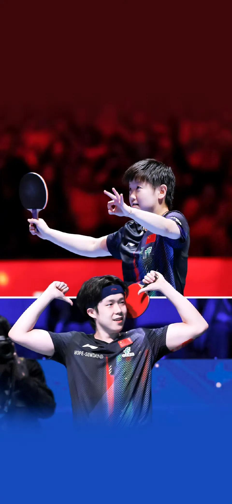 孙颖莎王楚钦双世一并肩作战相互鼓励相互成就!恭喜孙颖莎王楚钦双双夺得澳门世界杯女单男单冠军![赞][赞][赞]