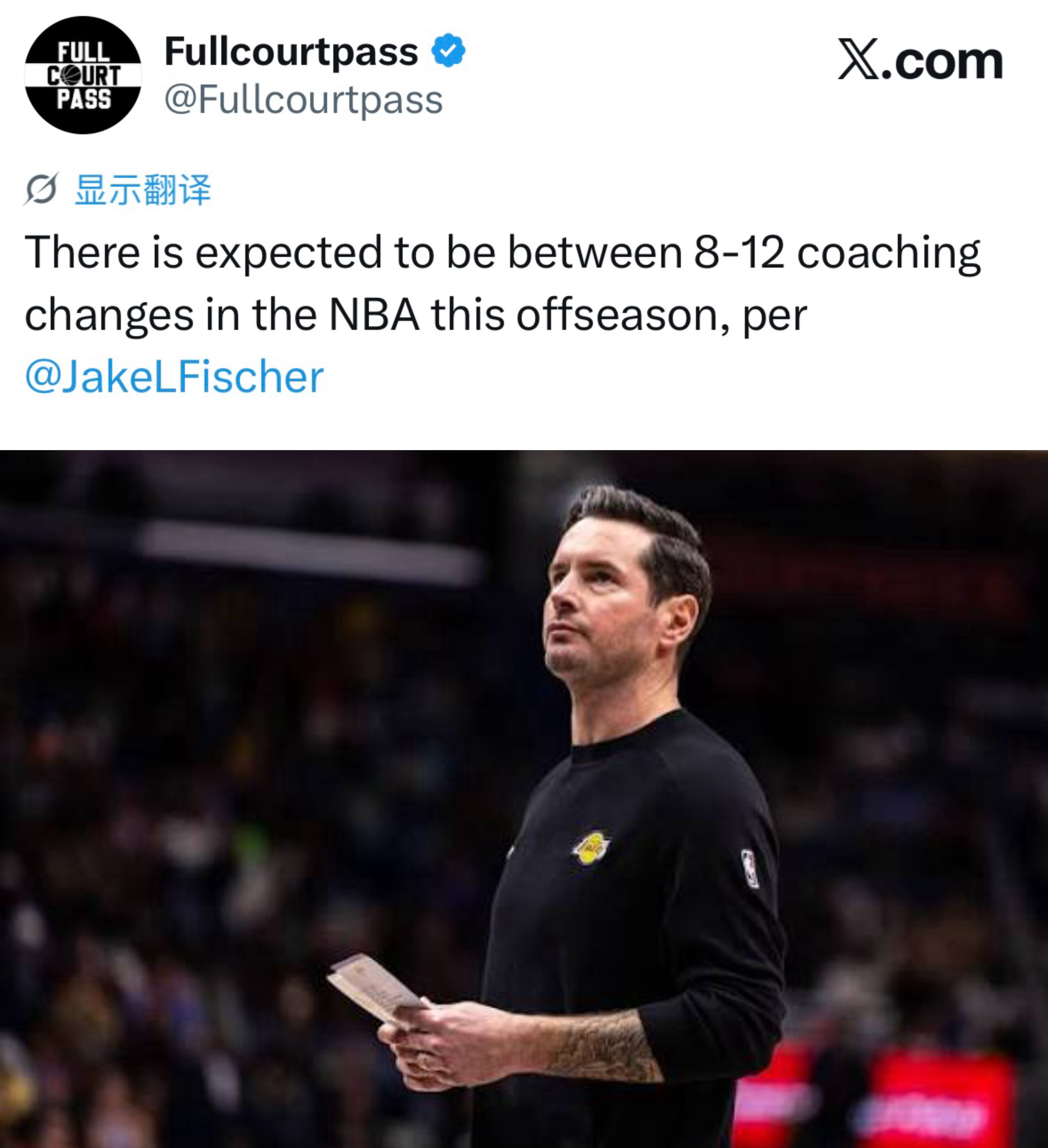 JakeFischer:预计今年休赛期NBA将出现8到12个主教练职位变动。