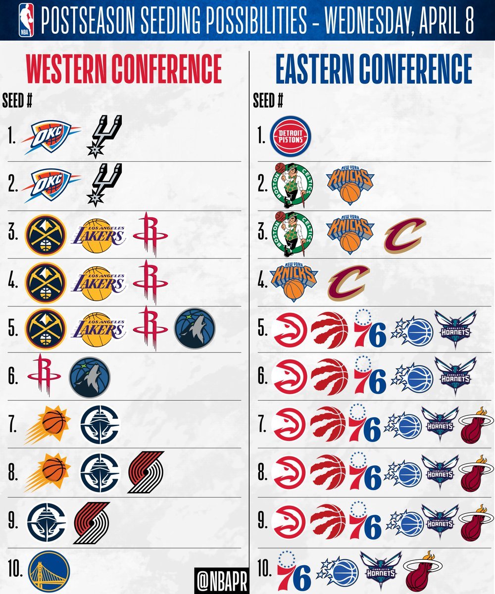 常规赛还剩4个比赛日,20支季后赛球队中,有18支尚未锁定最终排位。