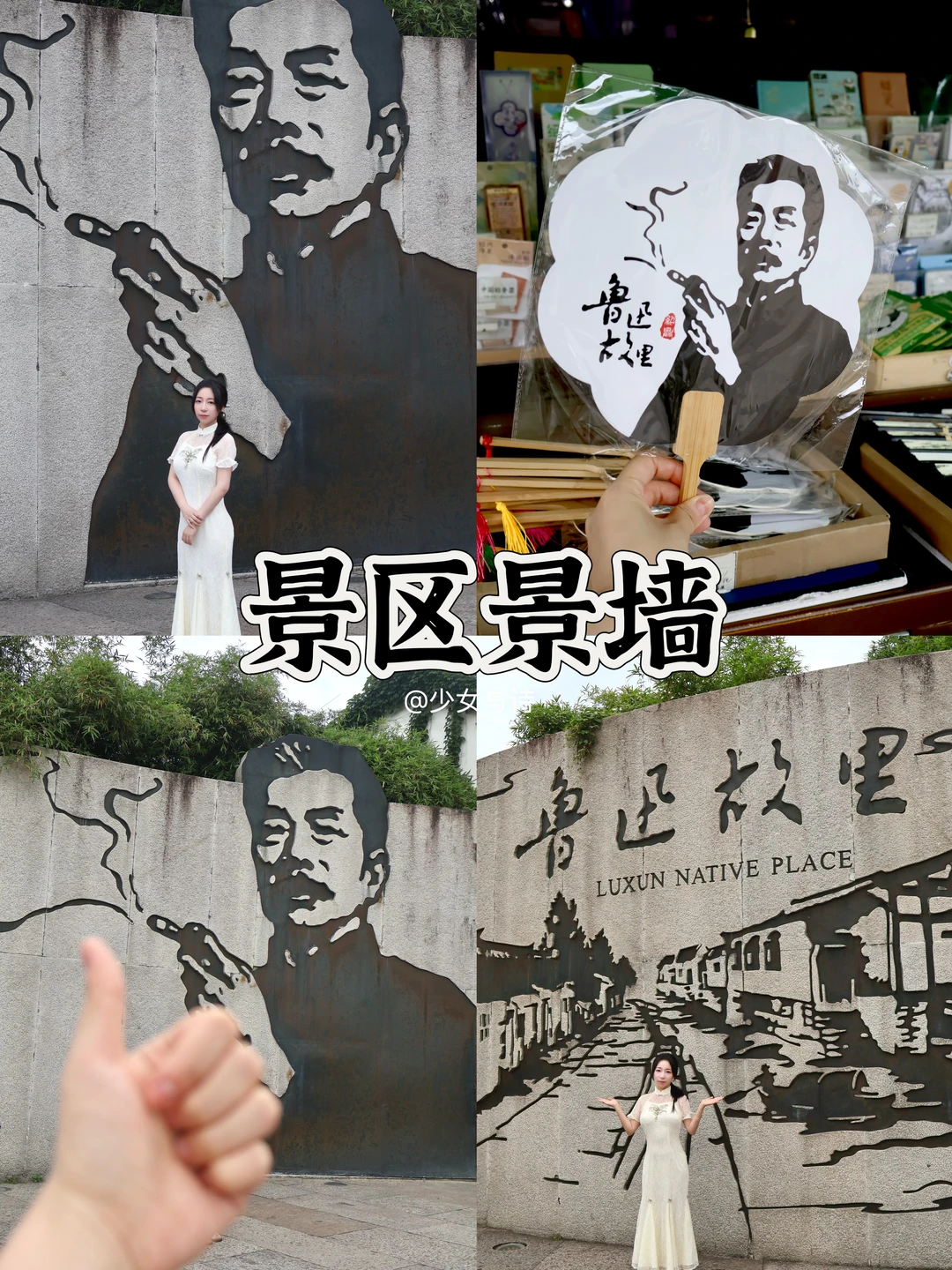 1️⃣景区景墙:景区入口的标志性建筑,高4.5米,长约15米的花岗岩景墙,上面有鲁迅画像和故里风貌图,“鲁迅故里”四个大字苍劲有力,景墙前还有儿时鲁迅、闰土和寿镜吾老师的青铜雕塑,非常文艺出片。