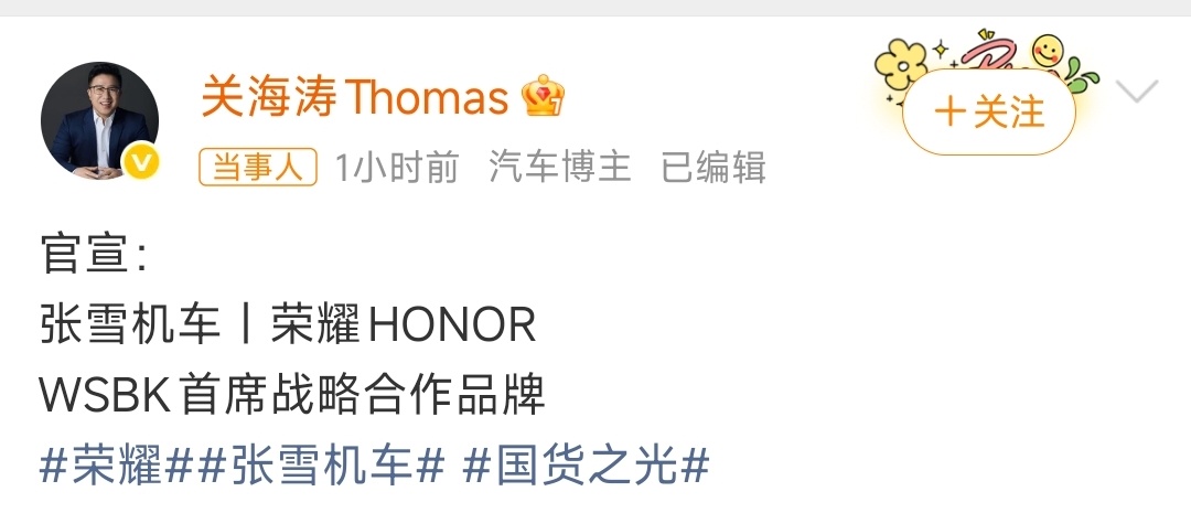 荣耀张雪机车战略合作荣耀这波合作可以的!