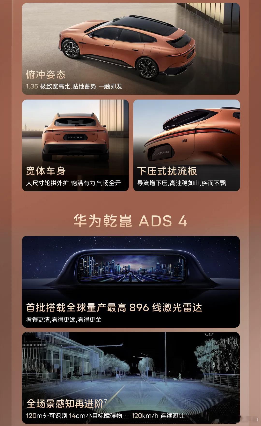 阿维塔 06T 真好看啊,还有 896 线激光雷达华子的辅助驾驶,如果有个续航 800+ 的单电机长续航版,价格 22 左右,有补贴的话再便宜点,多香啊。