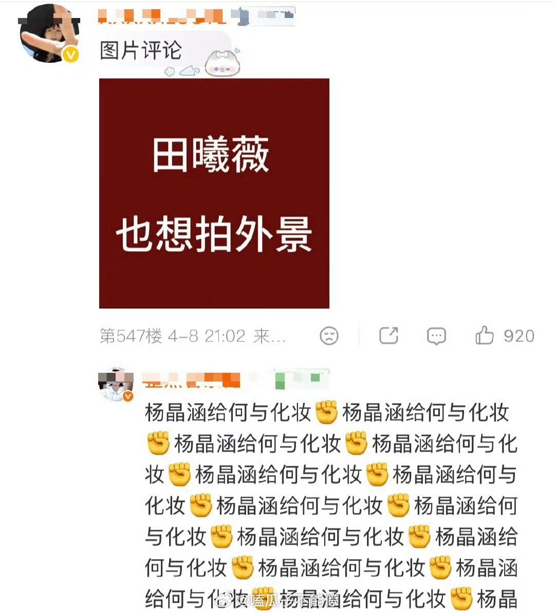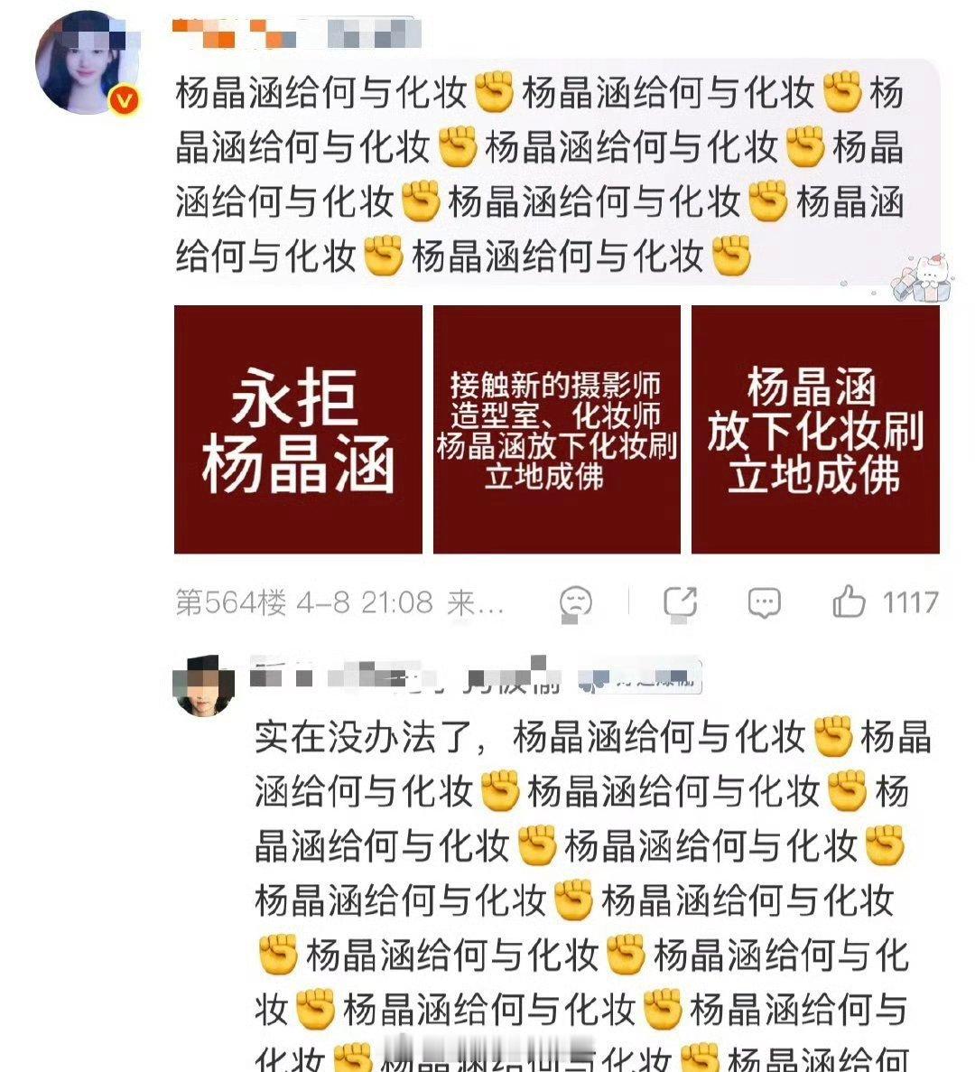 何与粉丝在维权,永拒化妆师。