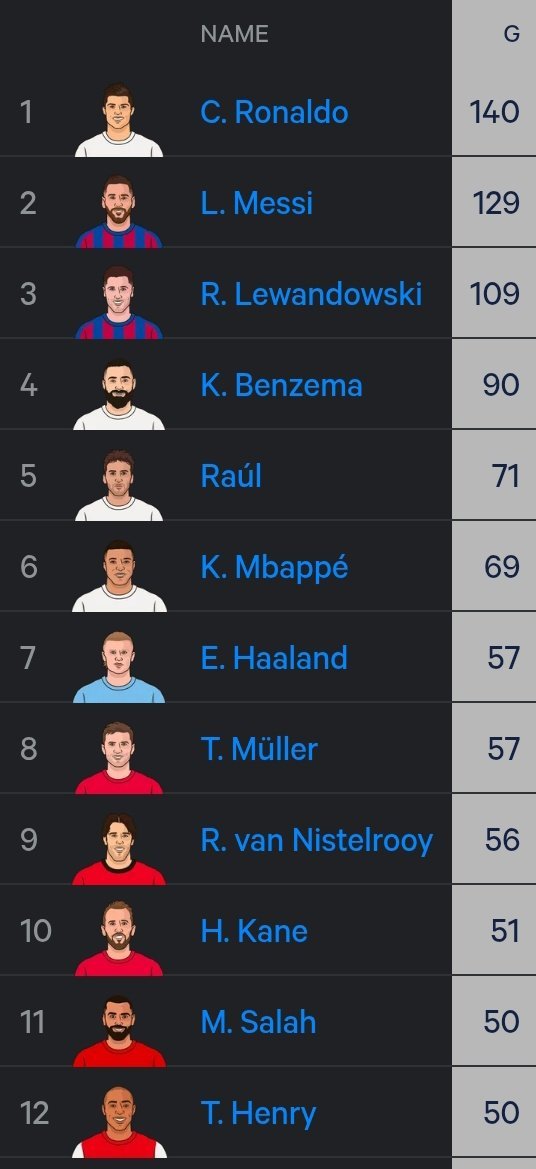 哈里·凯恩已跻身欧冠历史射手榜前十。