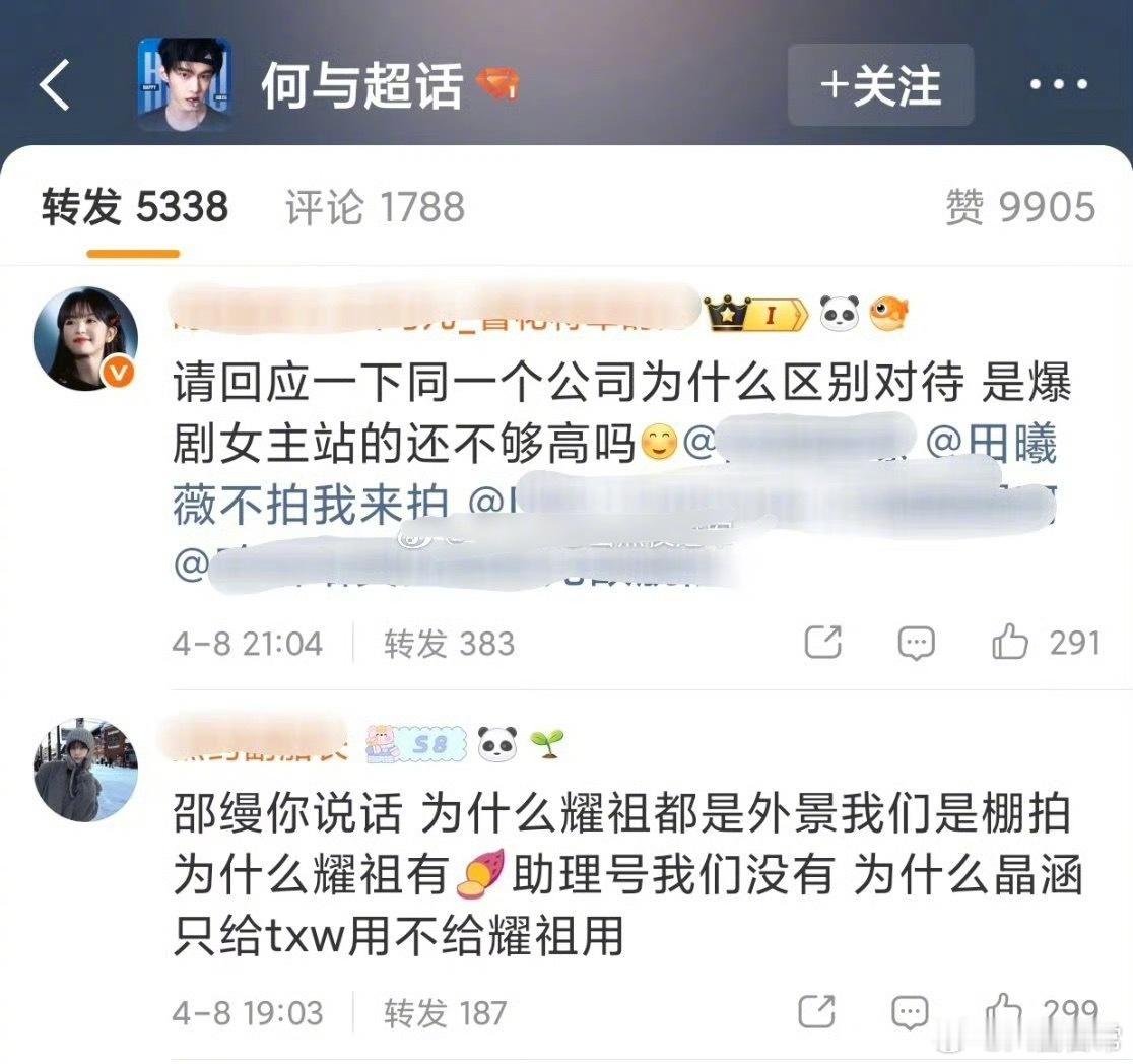 田曦薇粉丝在何与助理评论区维权,说公司区别对待,要求田曦薇的化妆师去给何与化妆