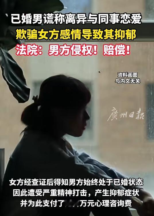“防不胜防!”广东深圳,一女子被同事追求,因为知道同事已婚,所以明确拒绝,直到同事说自己已经恢复单身,女子才答应与他谈恋爱,可最后发现同事根本没离婚,女子因此深受打击,花了近2万元心理咨询费治疗抑郁!网友:真是渣男! 事情要从几年前说起,那时顾姑娘和一个姓罗的男子是同事,罗某当时就很主动地追求她,追得挺猛,各种关心和示好,但顾姑娘一开始就知道罗某是已婚人士,底线很清晰当场就明确拒绝了他,后来为了彻底划清界限,避免不必要的纠缠,顾姑娘干脆直接离职,和罗某彻底断了所有联系,本以为这辈子都不会再有交集。 可没想到到了2023年夏天,罗某突然又加回了顾姑娘的好友,再次出现在她的生活里,这次罗某换了一套说辞,他告诉顾姑娘,自己和老婆感情早就破裂了,已经办好离婚手续,现在一个人生活,还说这些年一直没有忘记她,言语间满是深情和遗憾,一副真心想和她重新开始的样子。 顾姑娘一开始特别警惕,毕竟之前已经明确拒绝过,而且知道他有过婚姻,不敢轻易相信,但罗某特别有耐心,每天准时找她聊天,关心她的工作和生活嘘寒问暖,还时不时分享自己的“单身日常”,让顾姑娘慢慢放下了戒心,时间一长看着罗某的真诚模样,顾姑娘心软了,最终答应试着和他交往,满心期待着一段安稳的感情。 可两人相处没多久,各种疑点就慢慢冒了出来,罗某从来不让顾姑娘去他家里,不管顾姑娘怎么说,他都找各种借口推脱,晚上两人聊天,也很少视频通话,经常聊着聊着就突然消失,事后只随便找个理由敷衍,顾姑娘心里不安,提出想看他的离婚证,确认他真的单身,罗某要么说离婚证在老家拿不到,要么说离婚手续刚办还没下来,到最后甚至反过来指责顾姑娘不信任他,让顾姑娘心里充满了愧疚和疑惑。 顾姑娘越想越不对劲,心里的疑虑越来越重,她实在放心不下,就托以前的同事打听罗某的情况,这一打听真相就像一记重锤,狠狠砸在了顾姑娘的心上,罗某根本就没有离婚,一直和他的老婆孩子住在一起,所谓的“感情破裂”“已经离婚”,全都是他编造的谎言,目的就是为了欺骗她和他交往。 顾姑娘瞬间崩溃了,她这辈子最恨的就是插足别人的婚姻,可自己却在罗某的欺骗下,稀里糊涂成了别人嘴里的“第三者”,这种落差和背叛,让她无法接受。 从那以后顾姑娘就开始失眠、焦虑,吃不下饭,整天情绪低落,对什么事情都提不起兴趣,整个人状态差到了极点,无奈之下,她去医院做了检查,最终被诊断为抑郁症。 为了治好抑郁症,缓解自己的精神痛苦,顾姑娘开始定期做心理咨询,前前后后一共花了近2万元,这笔钱成了她这段错误感情最沉重的代价。 冷静下来之后,顾姑娘不想就这么忍气吞声,她决定用法律维护自己的权益,于是收集了两人的聊天记录、心理咨询的单据等所有证据,把罗某告上了法院,要求他赔偿自己的精神损失和心理咨询费。 开庭的时候,罗某还在狡辩,拒不承认自己的过错,甚至说顾姑娘没有足够的证据,证明她的抑郁症是自己导致的,试图推卸所有责任。 但法院经过审理认定,罗某故意隐瞒自己已婚的事实,谎称已经离婚,这种行为违背了诚信原则,也侵犯了顾姑娘的人格尊严,而且他的欺骗行为和顾姑娘患上抑郁症之间,存在直接的因果关系。 最终法院判决罗某赔偿顾姑娘精神损害抚慰金,以及近2万元的心理咨询费,目前判决已经生效,顾姑娘也成功拿回了自己花的钱,这件事被发到网上后,瞬间引发了网友们的热议,大家看完都怒了,纷纷吐槽罗某:真是渣男!明明已婚却编造谎言欺骗别人的感情,毁了别人的生活。 网友们也纷纷提醒大家,谈恋爱一定要擦亮眼睛,尤其是涉及婚姻这种关键问题,千万不能轻易相信对方的一面之词,一定要核实清楚对方的身份和婚姻状况,守住自己的底线,别像顾姑娘这样,被别人的谎言欺骗,最后深受打击,付出沉重的代价。 毕竟感情里最基本的就是真诚,一旦掺杂了欺骗,最终只会伤人伤己,而且这种欺骗,从来都不只是道德问题,一旦造成实质性伤害,法律也会给出公正的回应。 (信息来源:《已婚男谎称离异与同事恋爱欺骗女方感情导致其抑郁 法院:男方侵权!赔偿!》广州日报)