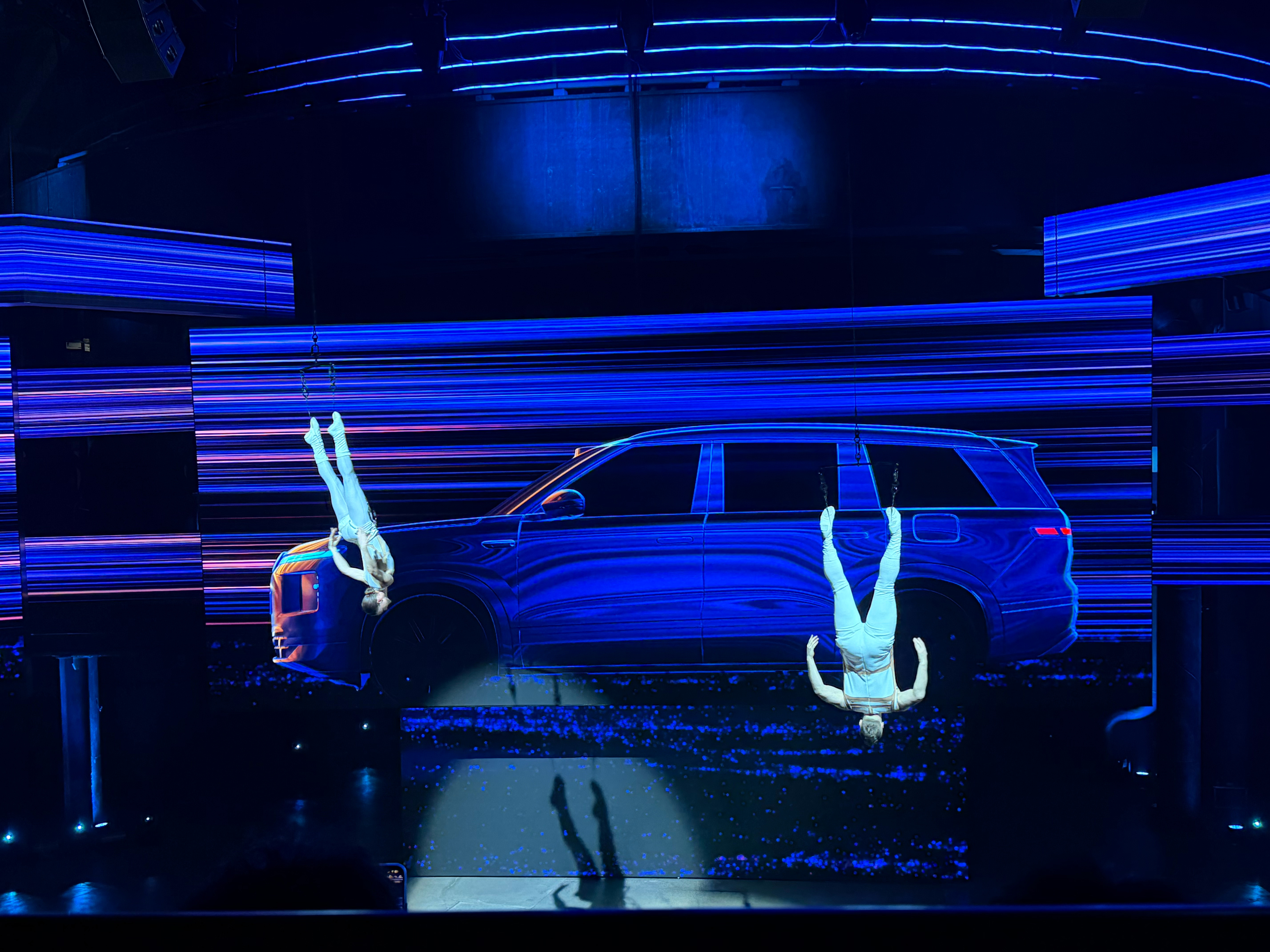参加大众品牌之夜一抬头看到两人吊在空中实际是候场的威亚演员效果如图三 北京·首钢园