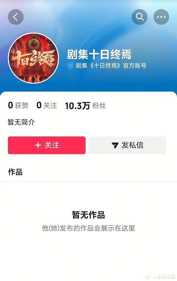 十日终焉官微开通5小时涨粉15.6万,甚至连名字和头像都没改!!官抖也开通了,肖战的戏关注度好高啊燥候官宣