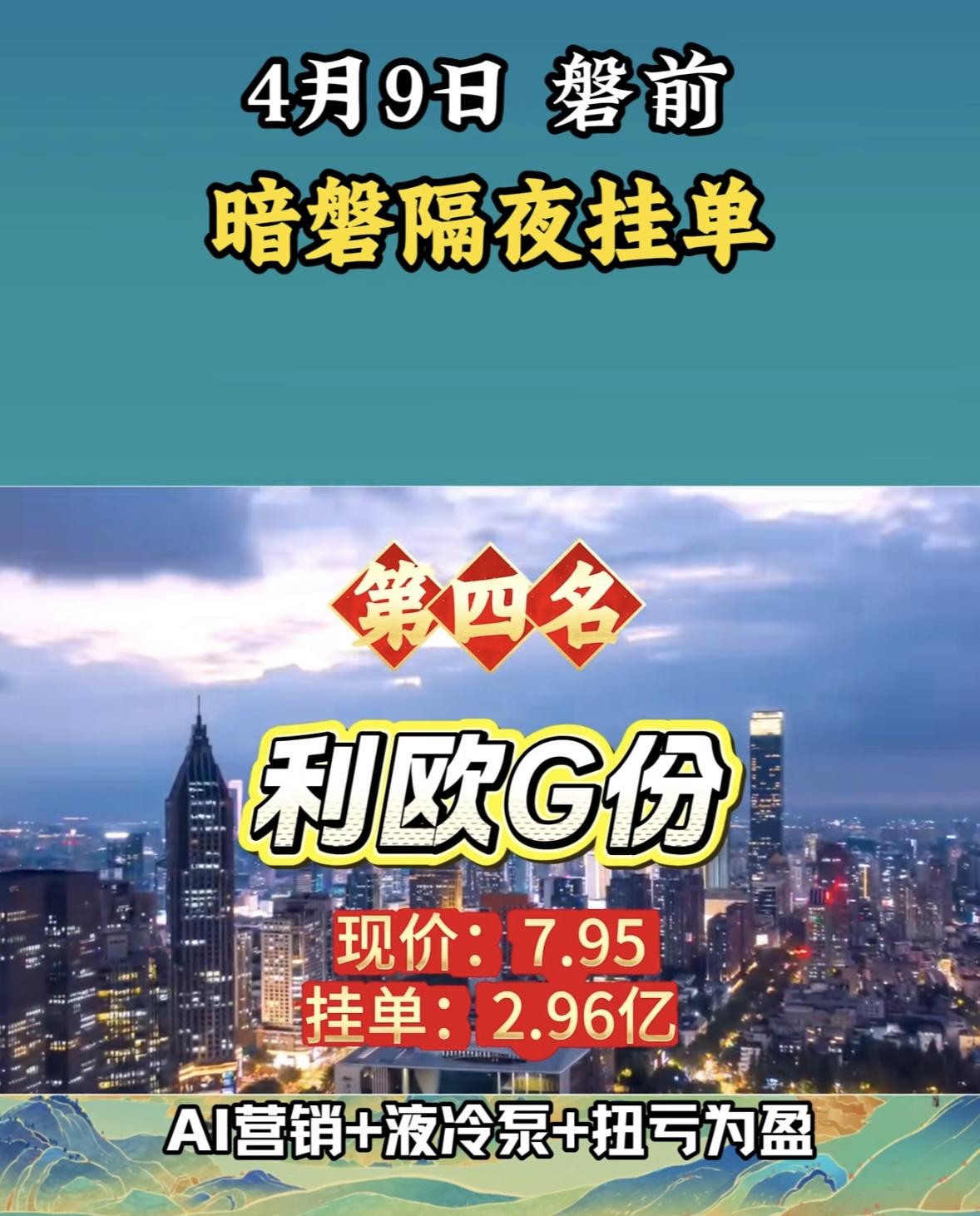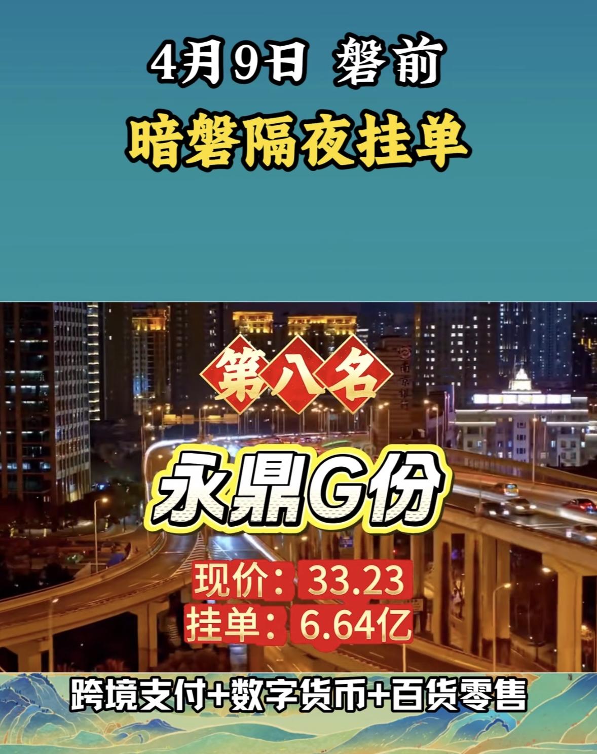 4月7日暗盘隔夜挂单排行榜揭晓 永鼎股份这暗盘隔夜挂单有点意思啊!现价33.23元,居然挂单6.64亿。从历史来看,它曾叫过永鼎光缆,2008年才更名为永鼎股份。 分析显示,它综合中性评分53,打败了71%的股票。短期处于弱势下跌,中期回落整理且下跌趋势减缓。近期平均成本27.78元,多头行情中在回落。过去10个交易日跑输大盘和行业平均。不过近5日资金总体流入1.24亿,远高于行业平均。机构评级近60个交易日以买入为主。这6.64亿挂单后续会让股价怎么走呢,值得关注。