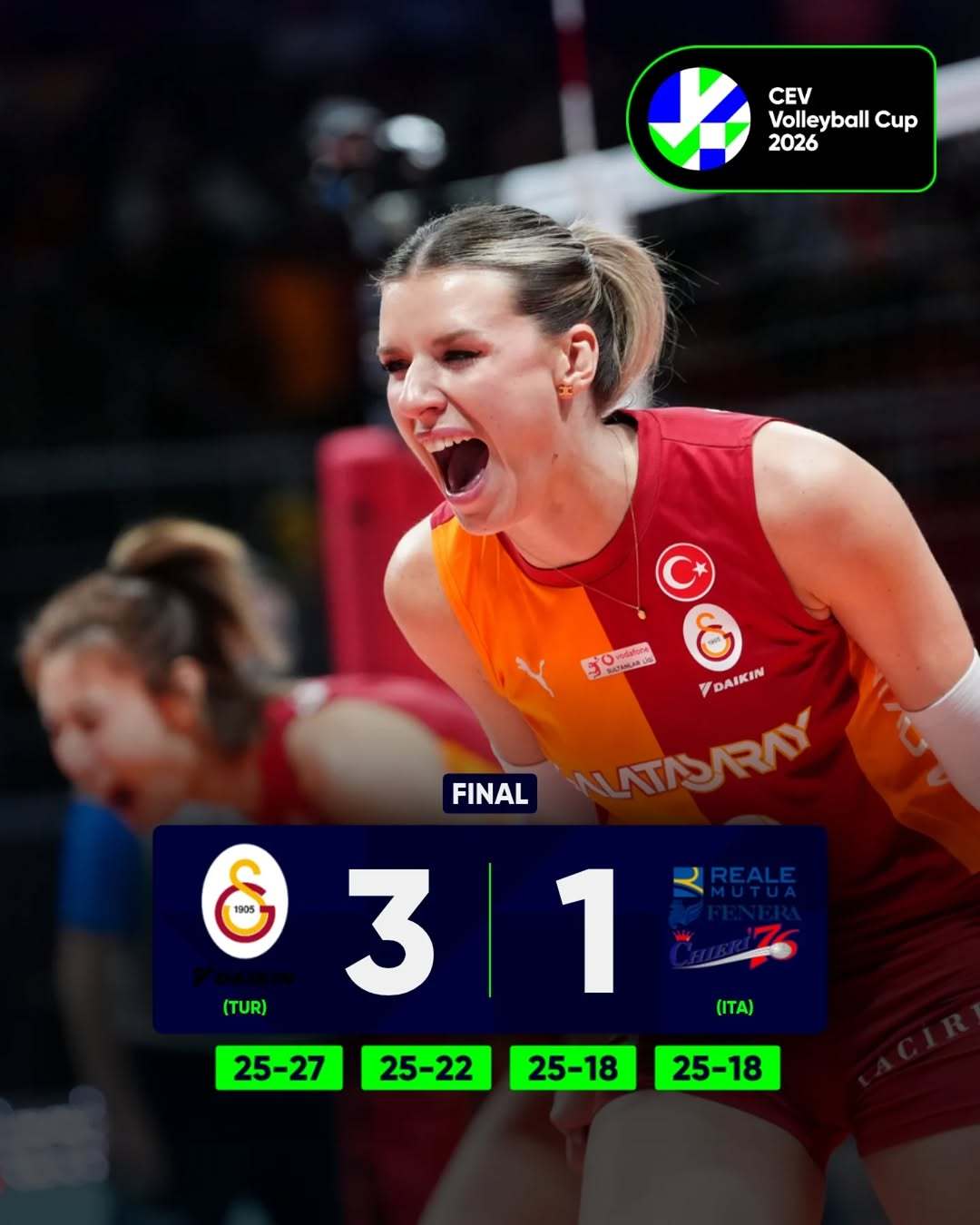加拉塔萨雷主场3比1战胜基耶里,两回合双杀,捧起欧联杯冠军奖杯!祝贺加拉塔萨雷,祝贺王媛媛!