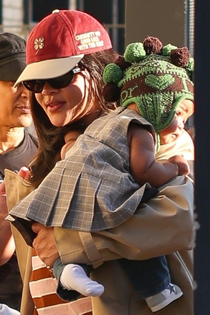 蕾哈娜抱娃出街 蕾哈娜抱着自己的女儿 Rocki首次公开亮相,也有不少网友发现她疑似又怀了。