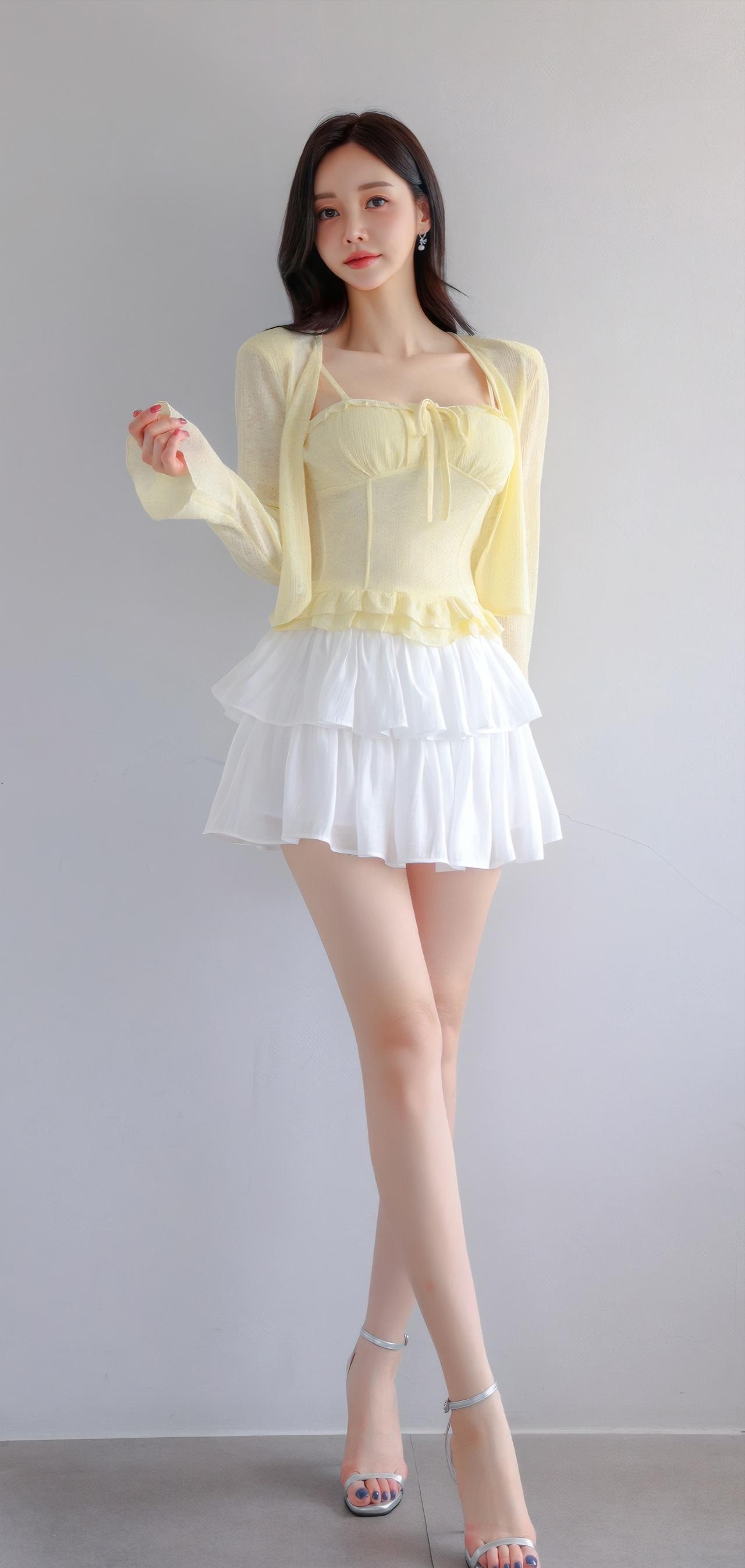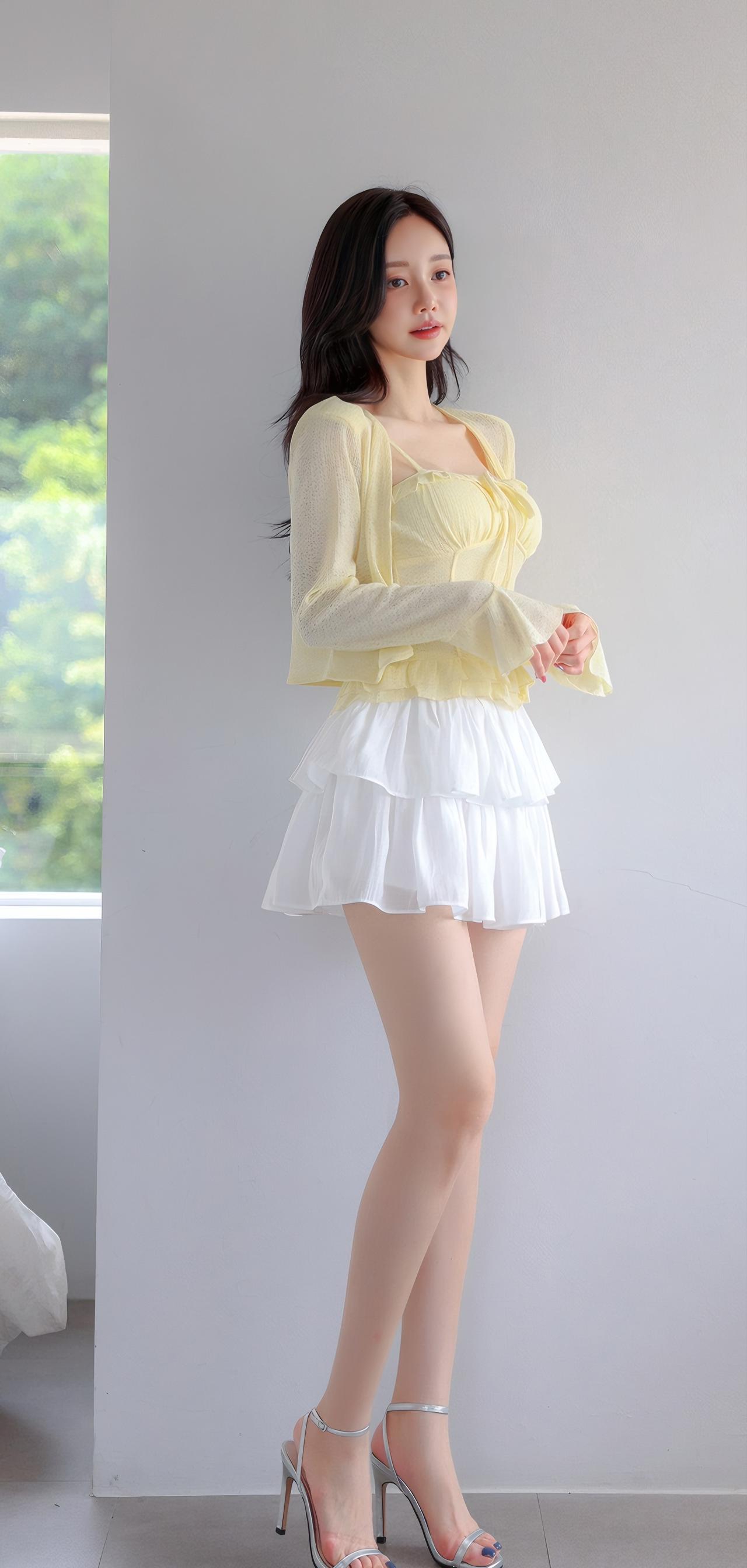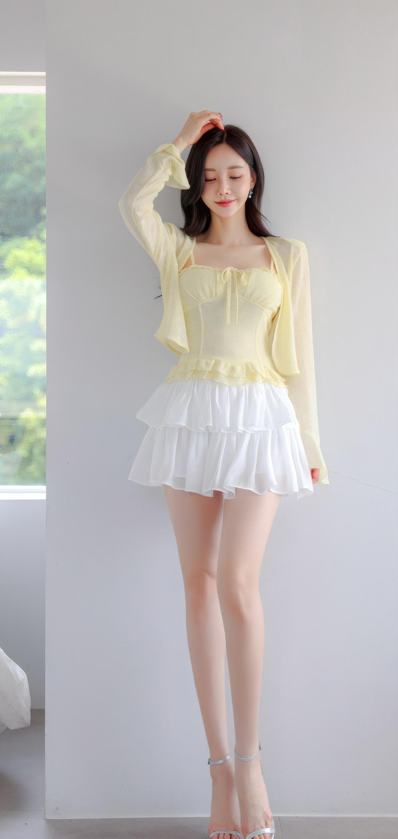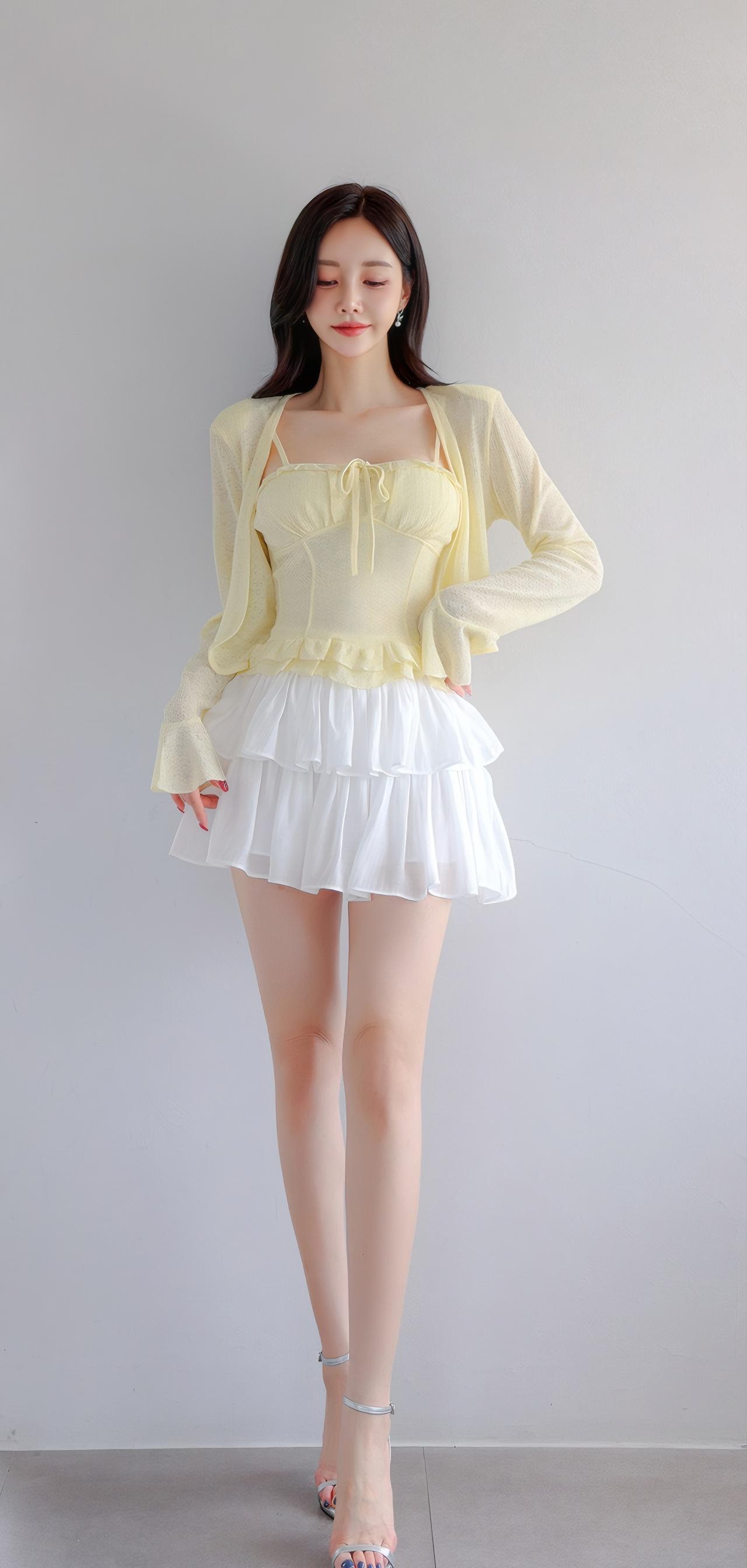 夏日清新穿搭,黄色吊带裙搭配白色百褶裙,甜美又俏皮!