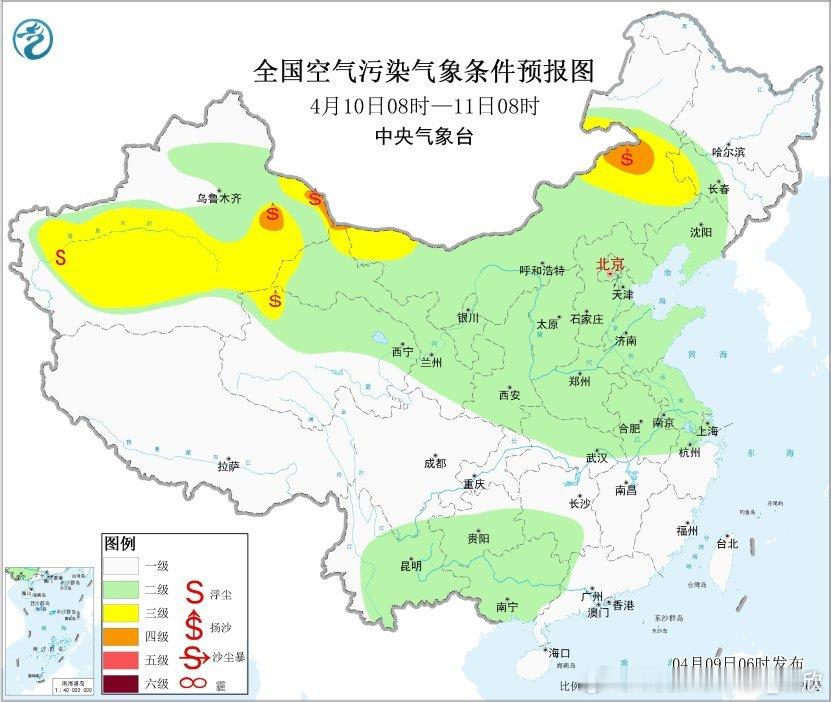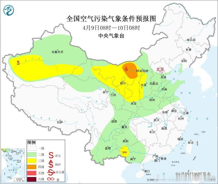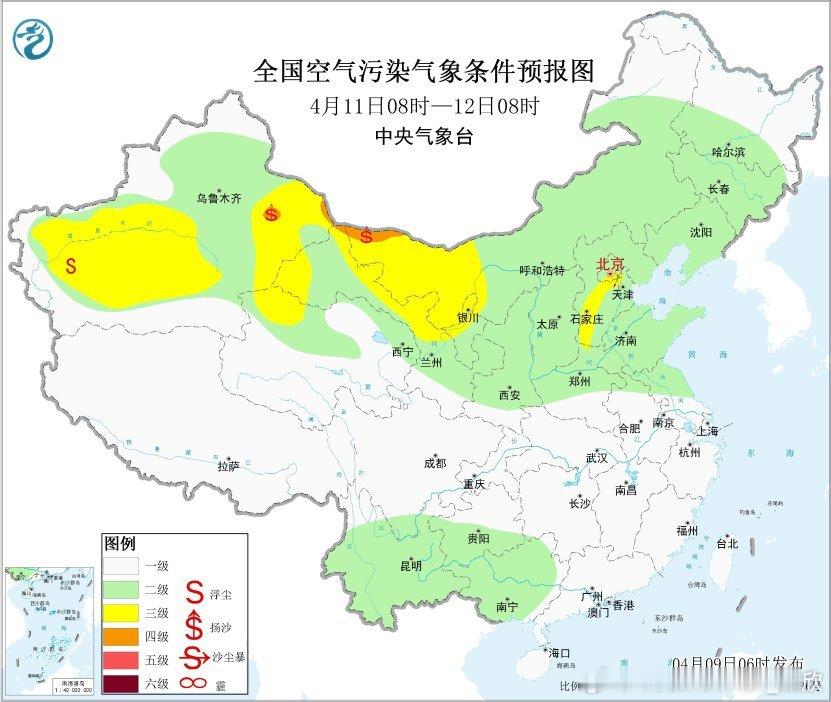 从数值预报看,明天早晨降水过后,华北到长江中下游多地湿度大,可能出现成片的大雾。另外,9日,内蒙古西部、宁夏北部等地的部分地区有扬沙或浮尘天气;11日至12日,新疆东部和南部、青海西北部、甘肃西部、内蒙古西部等地的部分地区有扬沙或浮尘天气。