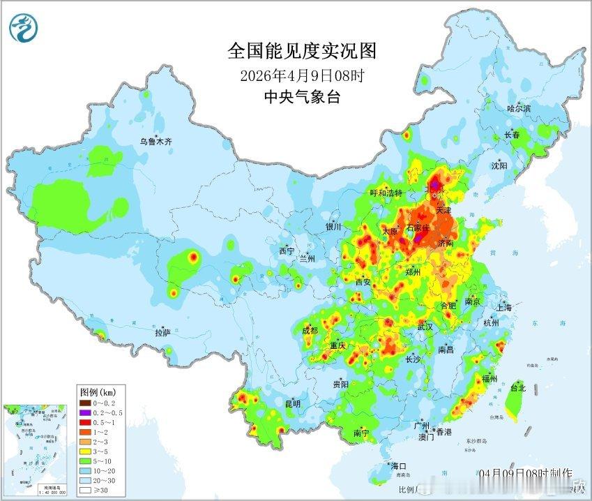 【雾和沙尘】今晨华北等地出现雨雾混杂的情况,8时能见度,安徽黄山26米、北京佛爷