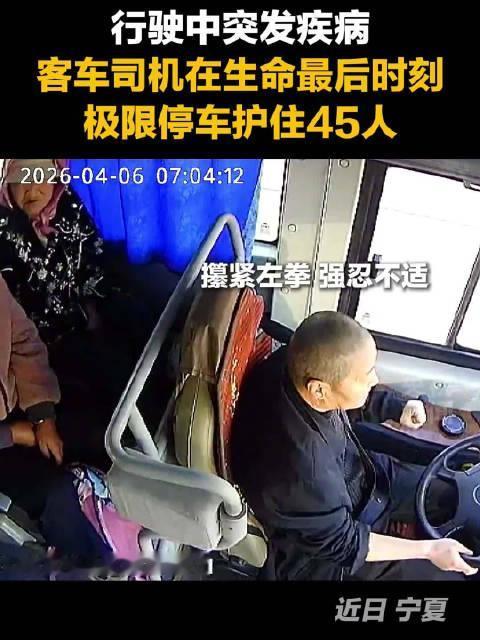 生死五秒,一位司机如何用生命最后的力量守护45名乘客? 2026年4月6日上午,56岁的宁夏同心县客车司机周岐红在京藏高速执行客运任务时突发疾病。车载记录仪显示,7点04分08秒他强忍病痛攥紧左拳,随后双手抓住方向盘却无力控制。当客车失控撞向护栏、乘客陷入慌乱的危急时刻,周岐红在生命最后五秒拼尽力气将方向盘回正并猛踩刹车。7点04分33秒,客车安全停靠在2米深沟旁,45名乘客全部安然无恙。这位拥有30年驾龄的老司机脚仍死死踩着刹车,却永远倒在了驾驶座上。他用生命最后一刻的专业操作,避免了车辆冲沟或侧翻的更大悲剧。 高速暖心逆行