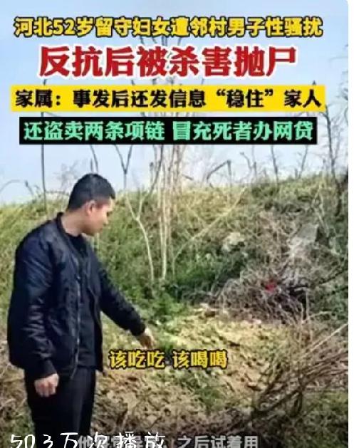 52岁装修工想抚摸邻村同龄妇女的隐私部位,被拒后竟将其杀害抛尸,还冒充受害者与儿子微信聊天半个月! 近日,河北石家庄一起令人发指的案件被媒体曝光,震惊了无数网友。52岁的装修工赵某某因涉嫌故意杀人罪被提起公诉。 案件发生在河北石家庄下辖的农村。受害人高某某(化名)是一名52岁的留守妇女,平日里一边照顾年迈瘫痪的婆婆,一边在村里打零工挣钱。她的丈夫和儿子都在外地打工,一家人虽然聚少离多,但也维持着平淡的日子。 2025年9月16日,高某某给在石家庄工作的儿子田先生发了一张身份证照片,请他帮忙在网上代缴医保。田先生当时忙于工作,没有及时处理。然而他不知道的是,这竟然是母亲最后一次和他正常联系。 9月19日,邻村52岁的装修工赵某某以“送花生”为由,将高某某骗至一处花生地。两人之前就认识——几年前,赵某某曾到高某某家做水电装修,彼此留了微信。在花生地里,赵某某意图不轨,对高某某动手动脚。高某某当场严厉拒绝,怒斥对方并说要报警。赵某某害怕事情败露,先是掐住高某某的颈部数分钟,将她掐昏。松手后他发现高某某还有呼吸,竟然再次掐住她的脖子,直到对方彻底死亡。事后,他将遗体丢弃在自家坟地附近的土沟里,用杂草掩盖后逃离现场。 更让人不寒而栗的是赵某某案发后的一系列操作。他拿走了高某某的手机和金首饰,用受害者的微信冒充本人,与她的儿子田先生保持联系,试图制造高某某“还活着”的假象。田先生渐渐发现母亲的反常——习惯发语音的母亲突然只发文字,打电话或发视频也总是被挂断。每次田先生发视频,对方就回复“不方便接听”。 10月2日,田先生给母亲打电话,电话短暂接通,但对方没有说话就挂断了。两天后,田先生终于察觉不对,向警方报案。警方连夜展开调查,第二天就将赵某某抓获,并在火葬场附近的荒地中找到了高某某的遗体。遗体被发现时,头部已经白骨化。 警方调查还发现,赵某某杀害高某某一周后,将她的两条金项链变卖了9000多元,还尝试用她的手机申请网络贷款,但没有成功。在此期间赵某某每天和没事儿人一样,该吃吃,该喝喝,按时接送他外孙女上下学,这心理素质太可怕了! 目前,赵某某因涉嫌故意杀人罪已被石家庄市人民检察院提起公诉。田先生和家人明确表示,不接受任何民事赔偿,“我们一分钱都不要,只求法院判处赵某某死刑,立即执行。” 杀人凶手竟然能装作若无其事,用受害者的手机和她的儿子聊了整整半个月的天,这种心理素质简直让人不寒而栗。因为害怕自己猥亵的行为被曝光就将人残忍杀害,这种人必须严惩!