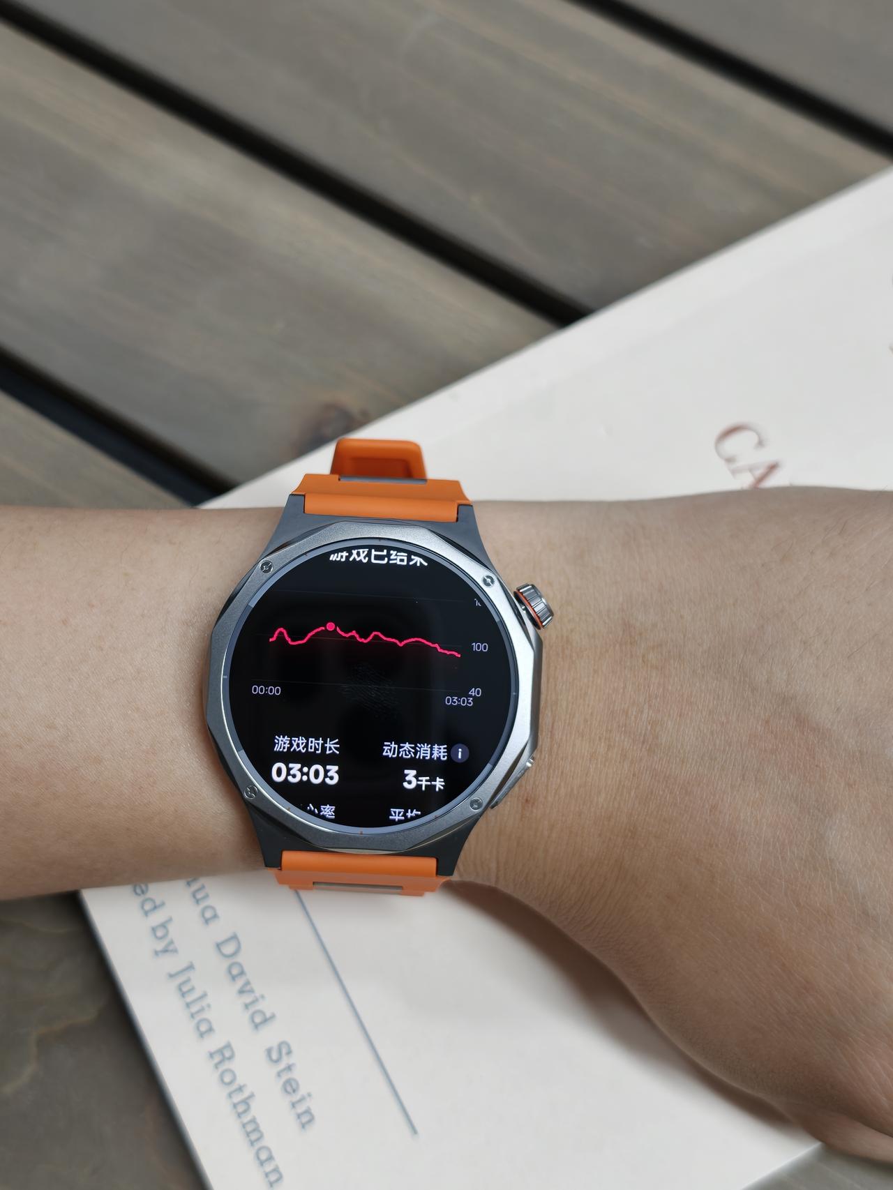 买来健身的手表,结果打游戏让我注意身体? 买OPPO Watch X3本来就是冲着健康监测去的,结果昨晚打游戏,无意间发现这手表居然还有"电竞模式",直接给我整懵了。 看了一下,开了电竞模式之后,手表会实时显示你的心率,而且打完一局,还能看复盘,可以显示心率波动曲线,哪个时间段最激动,全都记着。我翻了翻,团战那段心率蹦到了100+。 这东西说实话有点好笑,但又有点说不出的贴心。它倒不是在说"你打游戏不健康",就是默默帮你记着,你自己看着办。 除了电竞模式之外,OPPO Watch X3其他方面也相当贴心,支持100+运动模式,跑步、游泳、骑行这些专业的都有,还有AI运动教练,根据你的健康数据给你定方案,有点私教的感觉。 外观这块,全钛机身,12边切割表圈,重量也缩减到了43g,戴着真的没有什么分量感,橙色的竹节表带搭配钛合金表壳,上班戴不违和,出去玩也不显得太严肃。 就是不知道以后打游戏,会不会因为怕心率太高,开始主动冷静……
