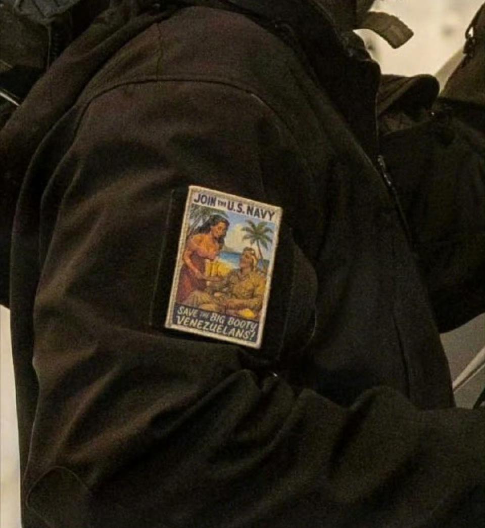 在五角大楼网站上现已删除的帖子显示:美国海军士兵臂章上写着:"加入美国海军,拯救这个大屁股委内瑞拉人!",公开侮辱委内瑞拉。 涉事人员: 为部署在福特号上(CVN-78)的电磁攻击中队(VAQ-142)的“灰狼”EA-18G“咆哮者”电子战飞机维修师。 该臂章被视为严重外交冒犯,委内瑞拉方面强烈谴责,加剧地区对立