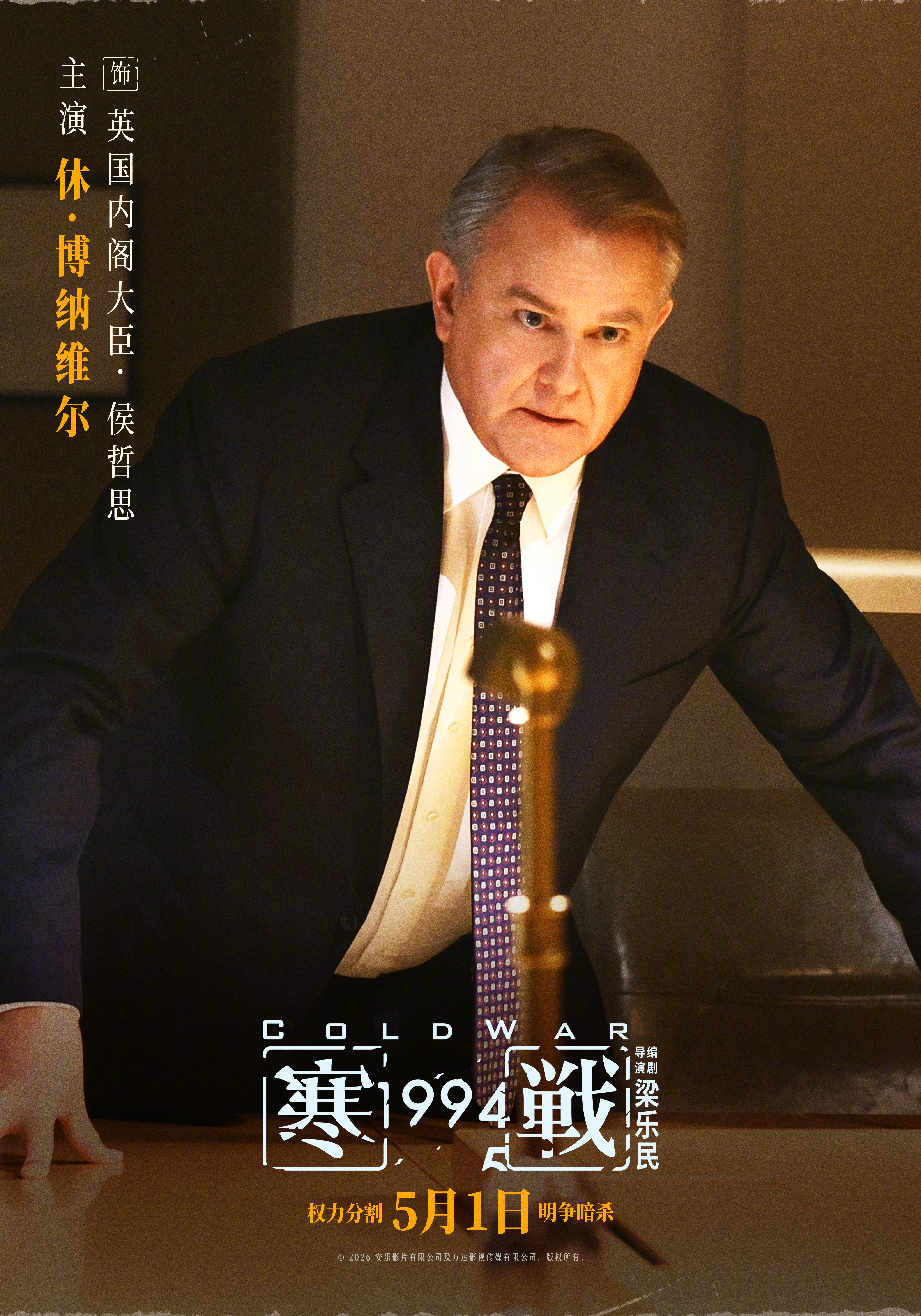 寒战1994全阵容曝光电影《寒战1994》今日曝光全阵容,将于5月1日上映。从2017年李文彬失踪引出的尘封档案,到1994年香港回归前夕的权力真空,一宗富商绑架案如同引信,点燃了英方、警队、富商、黑道四方势力的暗中角力,每个人物都身陷时代漩涡。影片由梁乐民执导并编剧,吴彦祖、刘俊谦、吴慷仁、谢君豪领衔主演,王丹妮、廖子妤、艾丹·吉伦、休·博纳维尔主演,周润发特别演出,郭富城特别演出,梁家辉友情演出,古天乐特别演出,元彪特别演出,叶童特别演出,陈以文特别演出,莫文蔚特别演出。