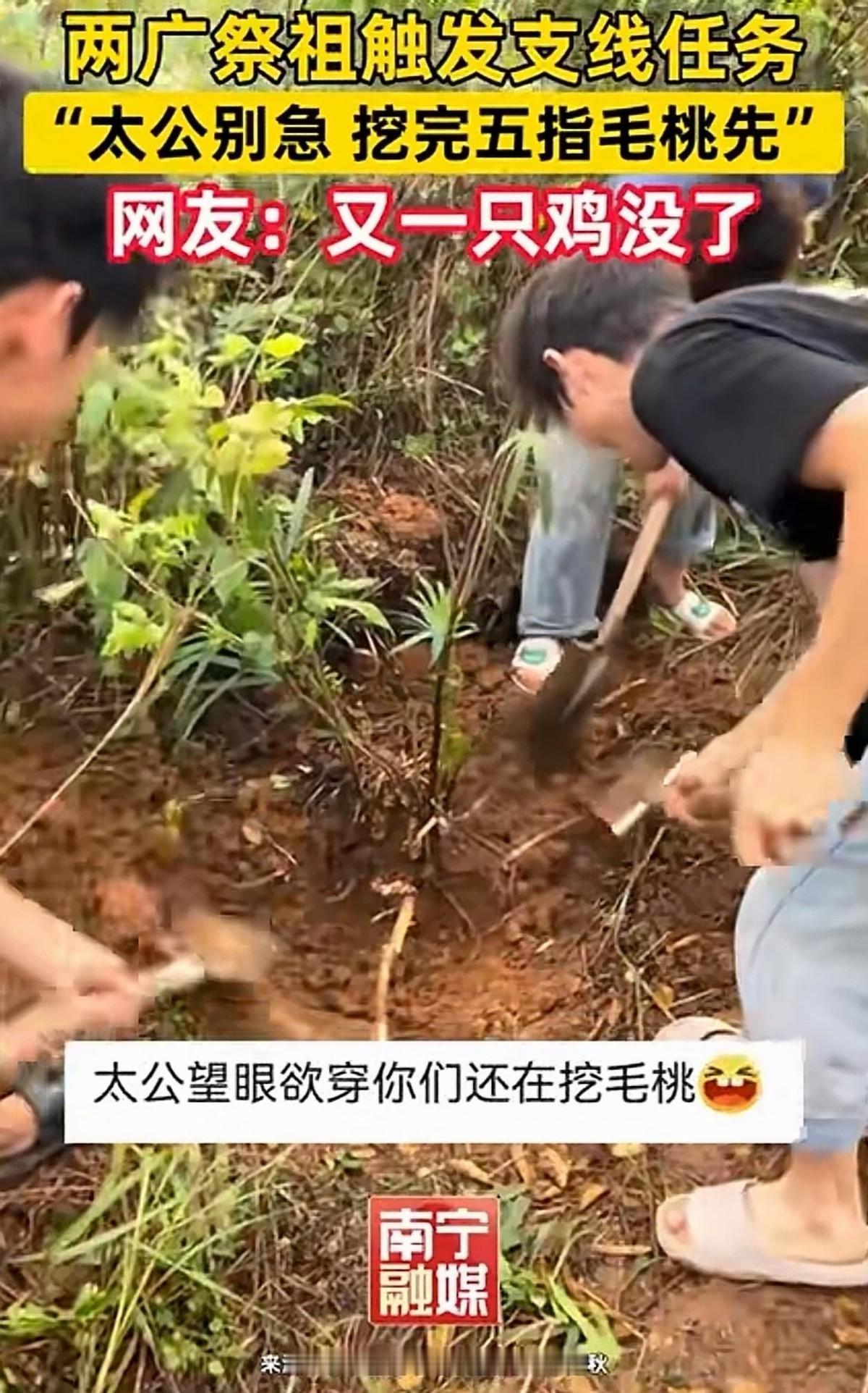 笑翻了!广西,男子一家人上山祭祖,可还没赶到地方,他们就纷纷走不动路了,原来他们在路上,看见了一颗五指毛桃,直接忘掉了太公,先动手挖了起来。 清明前后的广西山林,一场庄重的祭祖,往往会演变成热火朝天的 "挖宝大战"。 一家人扛着祭品、拿着工具往山上走,目标明确——给老祖宗扫墓。结果走到半山腰,所有人的脚步突然顿住了。 不是走累了,也不是迷了路,只是路边草丛里,忽然冒出了一株五指毛桃。绿油油的叶片舒展生长,粗壮的根系一露出来,就让人眼前一亮。 这下祭祖的事儿先放一边了。 一家人你看看我、我看看你,眼神里全是默契。没人多说一句话,祭品往地上一放,工具立马抄起来,分工明确地开挖。 有人挥铲刨土,有人小心翼翼拨开杂草,生怕伤了根茎。动作麻利又细致,比扫墓还积极。 旁边路过的其他扫墓人都看笑了,调侃说这一家人真是把太公放一边,先忙着挖宝贝。 但两广人心里门儿清——祭祖可以稍缓,这株五指毛桃错过了可能再也遇不到。 这并非贪小便宜,而是刻在两广人骨子里的执念。 岭南一带常年湿热难耐,体内湿气重得让人浑身发沉、格外难受。五指毛桃性平味甘,自带清甜的椰香味,用来煲鸡汤、炖排骨,鲜味儿能飘满整间屋子。更重要的是,它能健脾祛湿、舒筋活络,简直是为岭南气候量身定制的。 《岭南采药录》里称它为"南芪",可以媲美北方的黄芪。这种药食同源的好物,在城里想买都难买到这么野生的。 所以当它出现在眼前时,没人会犹豫。 忙活了好一阵子,一家人终于把这株五指毛桃完整挖了出来。根系又长又壮,看着就让人开心。 这才心满意足地收拾东西,继续往祖坟的方向走。一路上都在讨论回去是炖鸡汤还是炖排骨。 到了坟前,一家人认认真真清理杂草、祭拜上香,态度一点不含糊。只是在下山回家的路上,大伙个个笑意盈盈,心情格外畅快。 这事发到网上后,网友们都笑翻了。有网友调侃称,五指毛桃仿佛自带一句潜台词,让人们先把自己挖走,再去祭拜先人" 很多网友都在评论区表示,自家扫墓时也会这样,祭拜祖先之余顺带采摘野菜菌菇,早已是习以为常的事 两广人对待生活自有一番态度,对传统心怀敬畏却不拘泥死板,既热爱人间烟火,也珍视大自然的每一份赠予 祭祖是头等大事,但生活里的滋味也不能忽略。一场祭祖,既有对先祖的缅怀,也有意外收获的欢喜。 信源:广西交通台昨天17:42来自微博视频号触发支线任务
