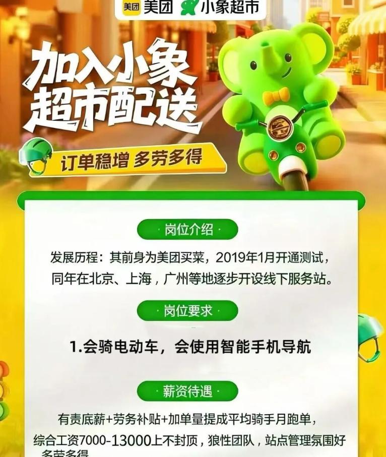 【南沙湾外卖买菜更方便了!港湾街道首家小象超市来了】港湾街道的市民以后外卖买菜要方便快捷多了!港湾街道首家小象超市(天后站)宣布将于 2026年4月12日正式开业! 随着小象超市的落户,南沙湾区块乃至整个港湾街道的"菜篮子""米袋子"将迎来全面升级——最快30分钟,新鲜蔬果、肉禽蛋奶直送到家! 小象超市(天后站)现面向辖区居民及周边街坊公开招募配送骑手100名,薪酬透明,多劳多得月综合收入7000—15000元。 根据介绍,虽然目前南沙湾可以正常点小象超市的外卖,甚至还有山姆代送,但是由于距离问题,等待配送的时间会比较久。