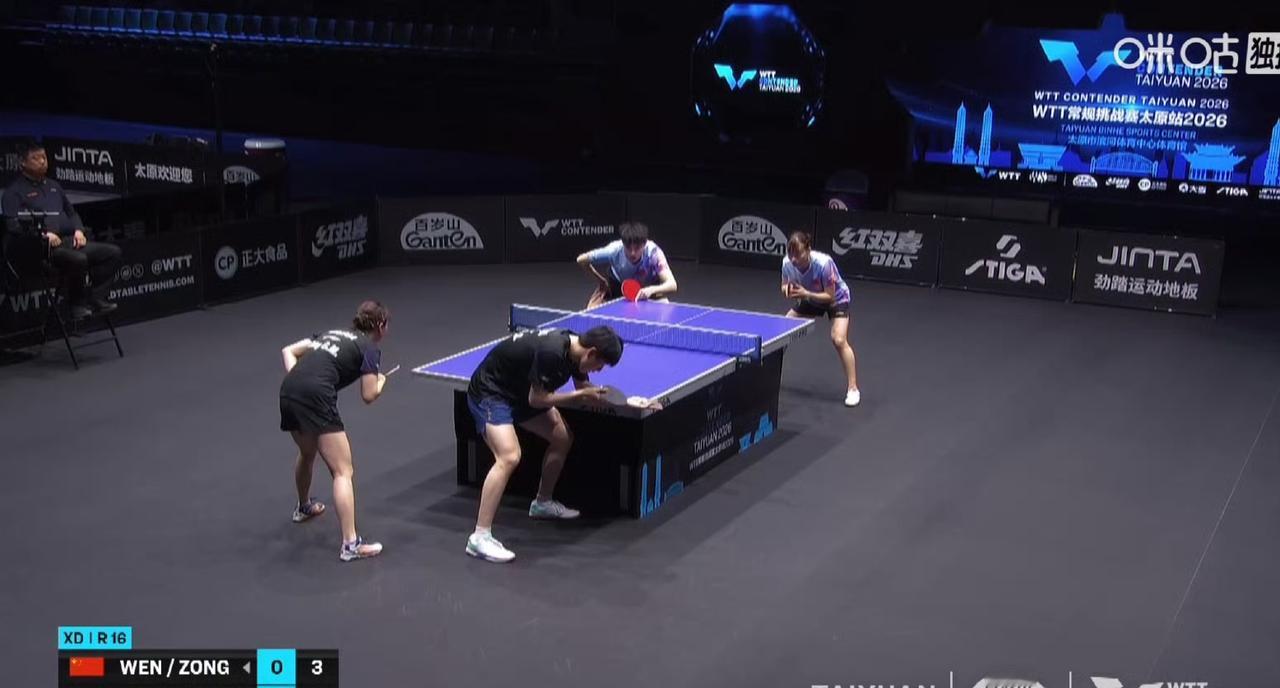 陈垣宇/覃予萱🇨🇳止步日本组合首轮! 温瑞博/纵歌曼🇨🇳不敌黄友政/石洵瑶🇨🇳止步首轮! 刚刚结束的两场2026WTT常规挑战赛太原站混双1/8决赛中, 陈垣宇/覃予萱🇨🇳0-3不敌日本青年赛组合坂井雄飞/高森爱央🇯🇵,止步首轮,三局比分为:9-11,8-11,8-11。 图图和蘑菇两个人都接不好对手日本选手的发球,尤其是高森的发球。 黄友政/石洵瑶🇨🇳直落三局,3-0击败温瑞博/纵歌曼🇨🇳,晋级混双八强,三局比分为:11-6,11-9,11-4。 陈垣宇去年全运会上打混双项目的状态不知道去哪儿了,对手坂井和高森可是2006和2008的出生的小将啊。 另外一场这内战让人唏嘘,晋级就好,温瑞博继续加油,男双、男单好好干吧!
