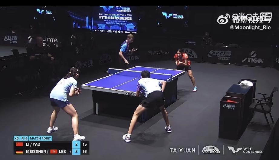 被让二追三了, 李和宸/姚睿轩🇨🇳止步首轮! 一场2026WTT常规挑战赛太原站混双1/8决赛刚刚结束, 李和宸/姚睿轩🇨🇳2-3不敌跨协会组合迈斯纳🇩🇪/李凯敏🇭🇰,遗憾止步混双首轮比赛,五局比分为:11-6,12-10,9-11,9-11,15-17。 李和宸/姚睿轩🇨🇳本来领先两局 ,但后面决胜局10-9之后自己的5个赛点没有拿下来,被人家一个死网拿了个赛点,孩子们啊[捂脸]。 两人吃发球吃太多了,这个德国队男生有点球路。 国乒四对儿混双组合参赛,目前仅剩下黄友政\石洵瑶🇨🇳了。