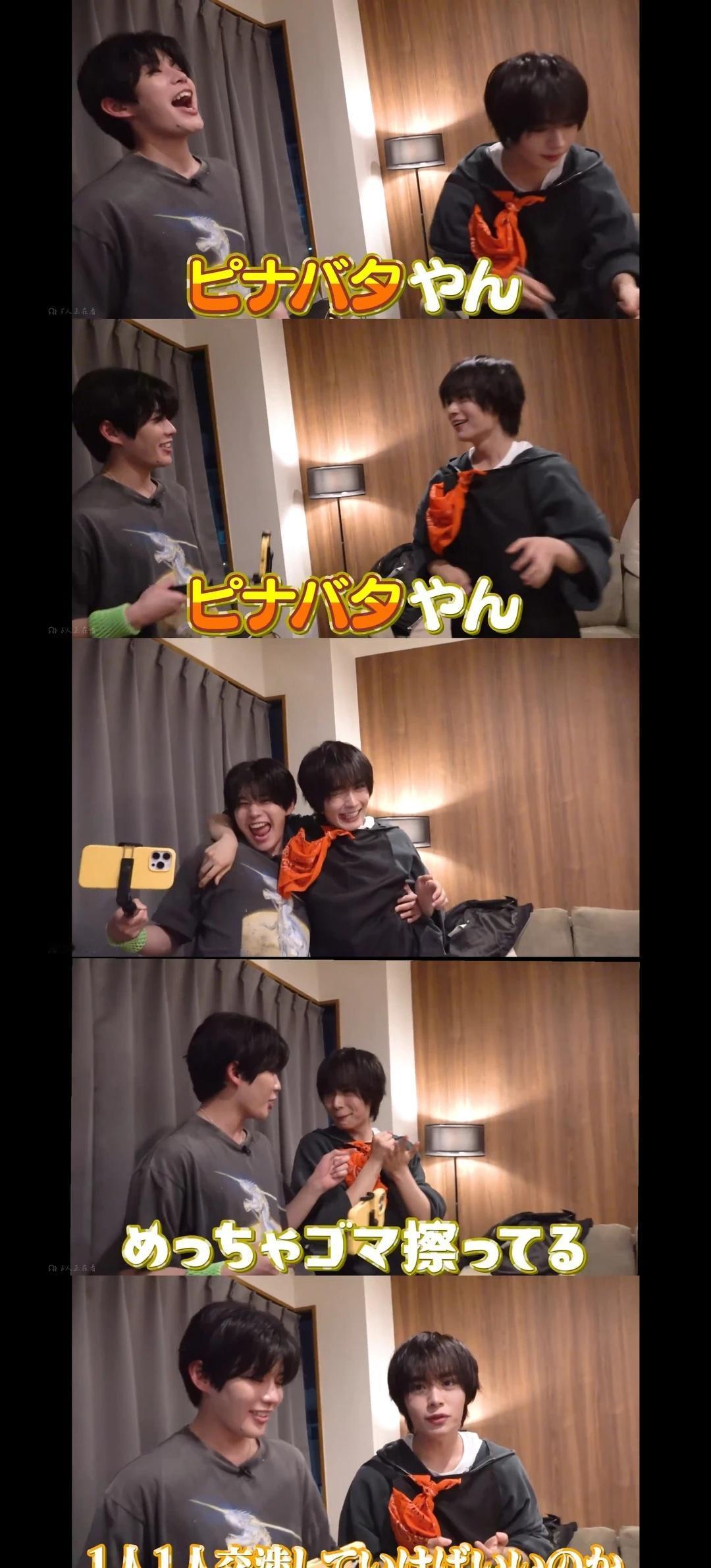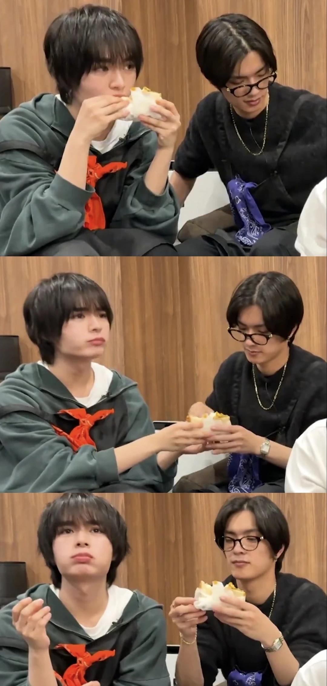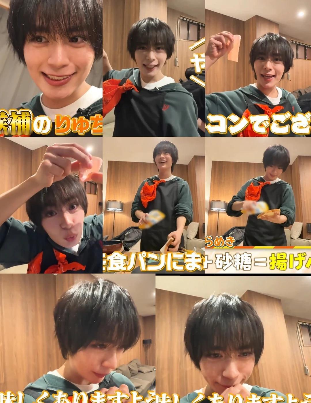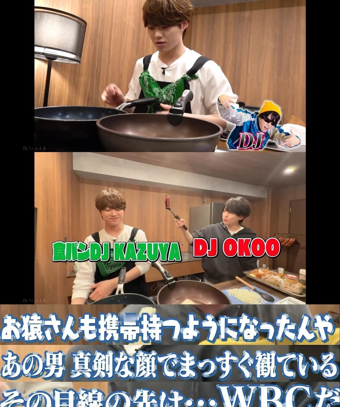 果然萌萌的我只适合萌萌 家里有一个人会做饭就行了 感觉是有点打击到流星了 宣布分数之后情绪特别低落 (可是他总是做出黑暗料理啊) 咱们下次只吃就好了 —— 这期每个人状态特别好 真的很好笑 大西畑之后是粉橙 然后又是珍奶 特别可爱 —— DJ大吾再次返场hhhh 特别好笑 什么时候再拍一次 本来kenken吃香蕉没什么的 丈给来一句以为是猴子在拿着摄像机hhhhh kenken手上是套了个蔬菜的保护套吗? 依旧在看棒球⚾ 还没关掉电视吗? —— 虽然小流受到打击 大家受到味蕾冲击 但是真的很好笑 听到放了培根之后这个桥感觉要笑出来了 没一个人敢上手拿 丈:谷子丑照警告⚠️ 是真的受到打击了 状态特别像早期攀岩不成功的样子 感觉下一秒要哭出来了 没事的小流 我们只吃现成的就好 大吾安慰小流 下次做流星擅长的 大吾就是这样很让人心暖 恭平就这样一直在拍拍流星 今天恭流也是绝赞互动 桥啊 开头还能摸摸流星 结束了今天看都不看你 罚你给流星做十天饭 大西流星 なにわ男子
