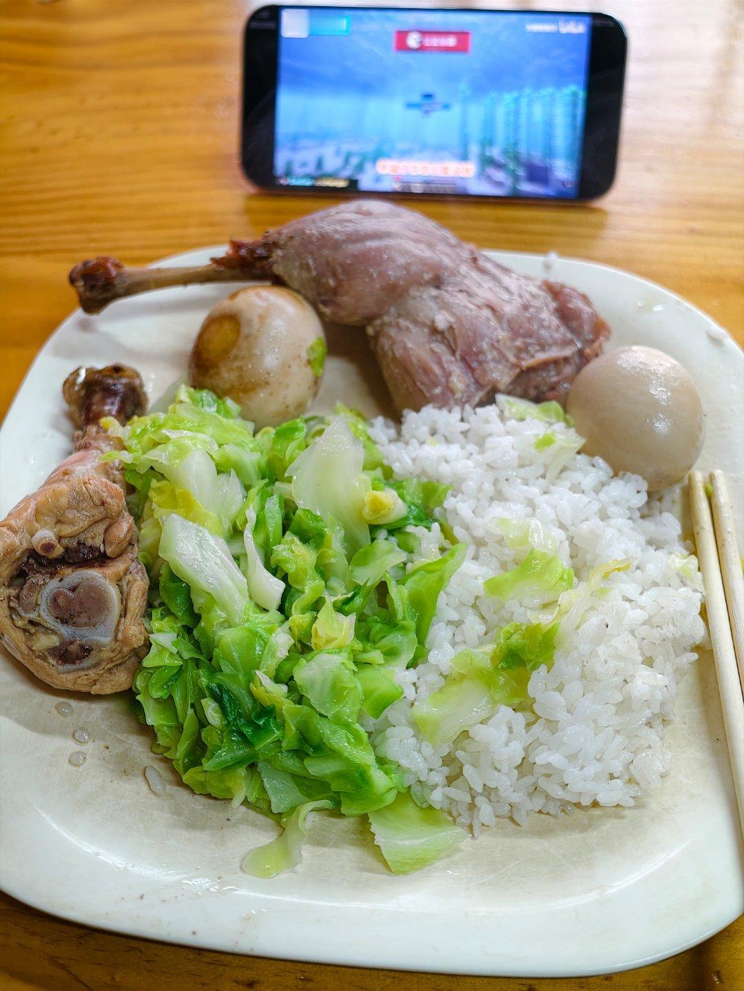 米饭依旧减半加根鸡腿鸭腿鸡腿去皮不要豆干多放蔬菜