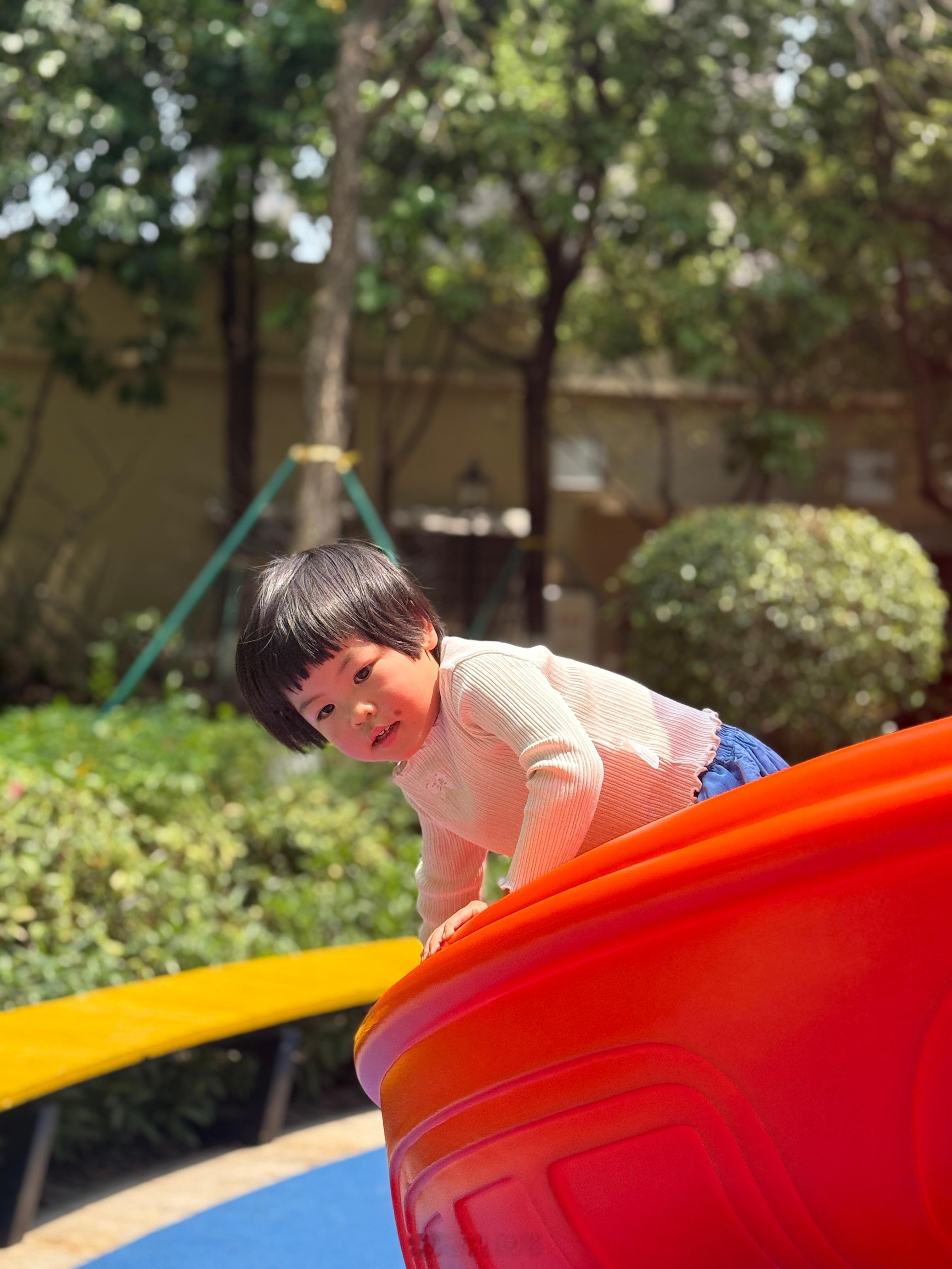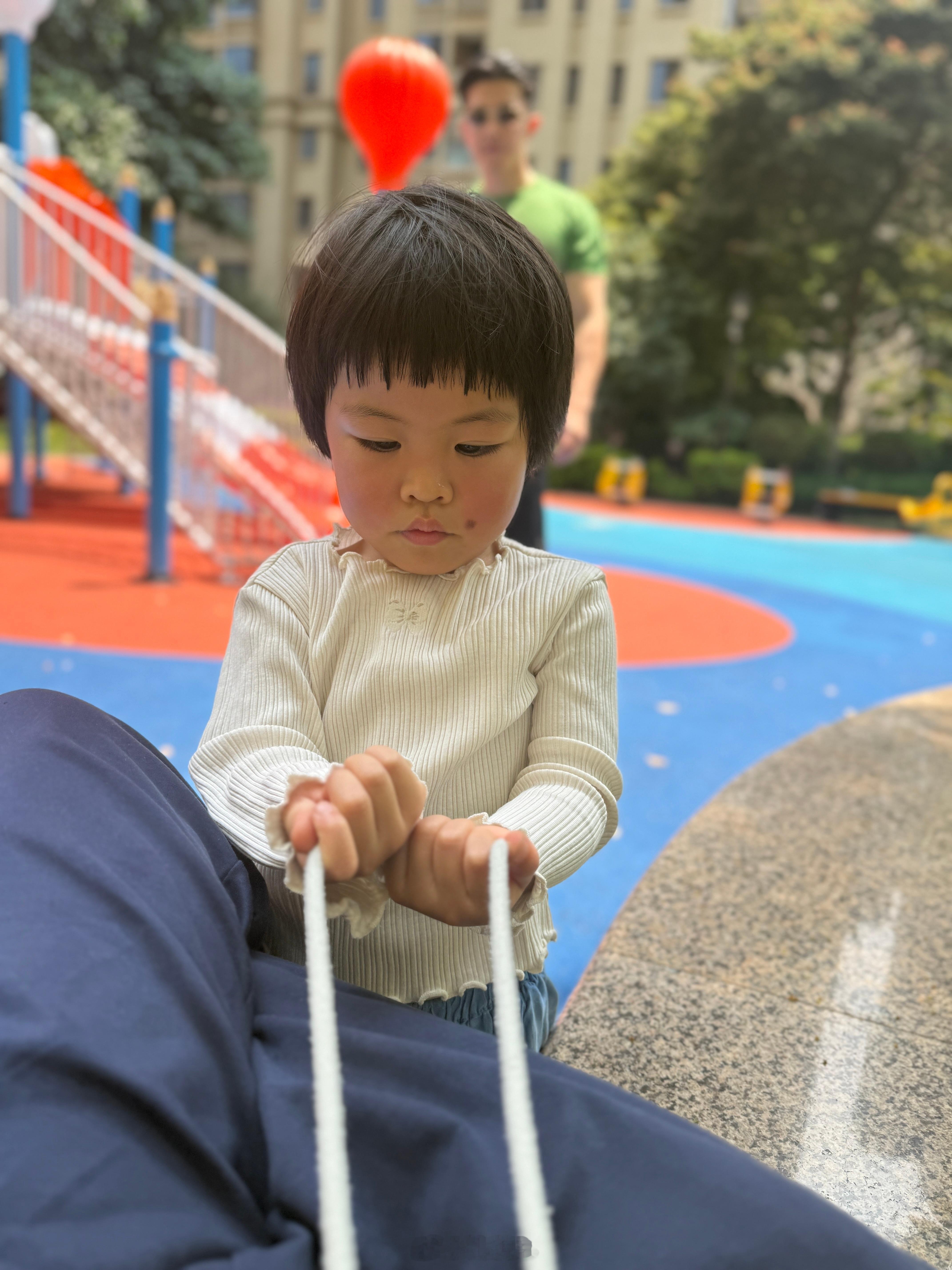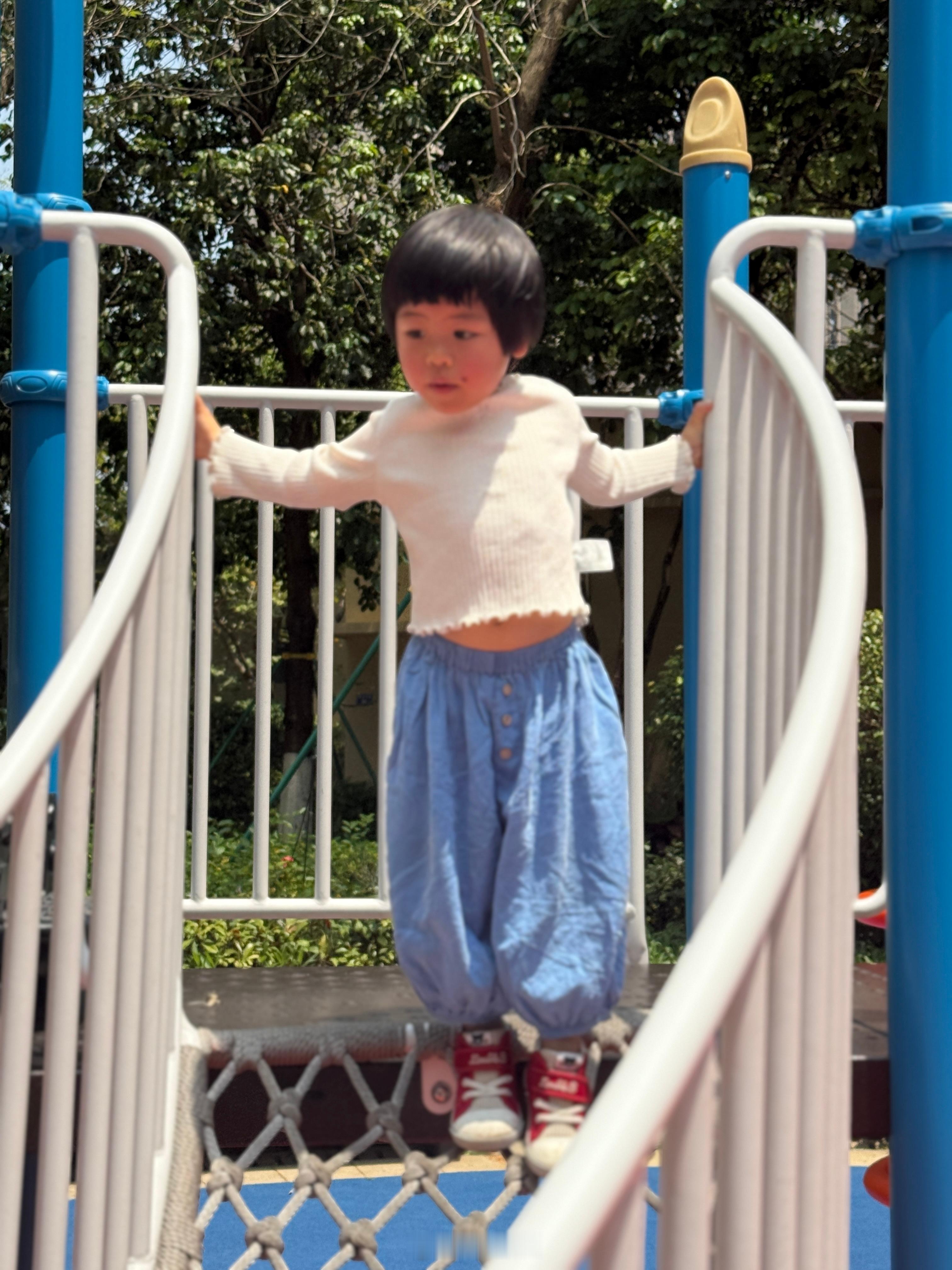 厦门已经是夏天了,户外玩一会儿球宝就变成了红色