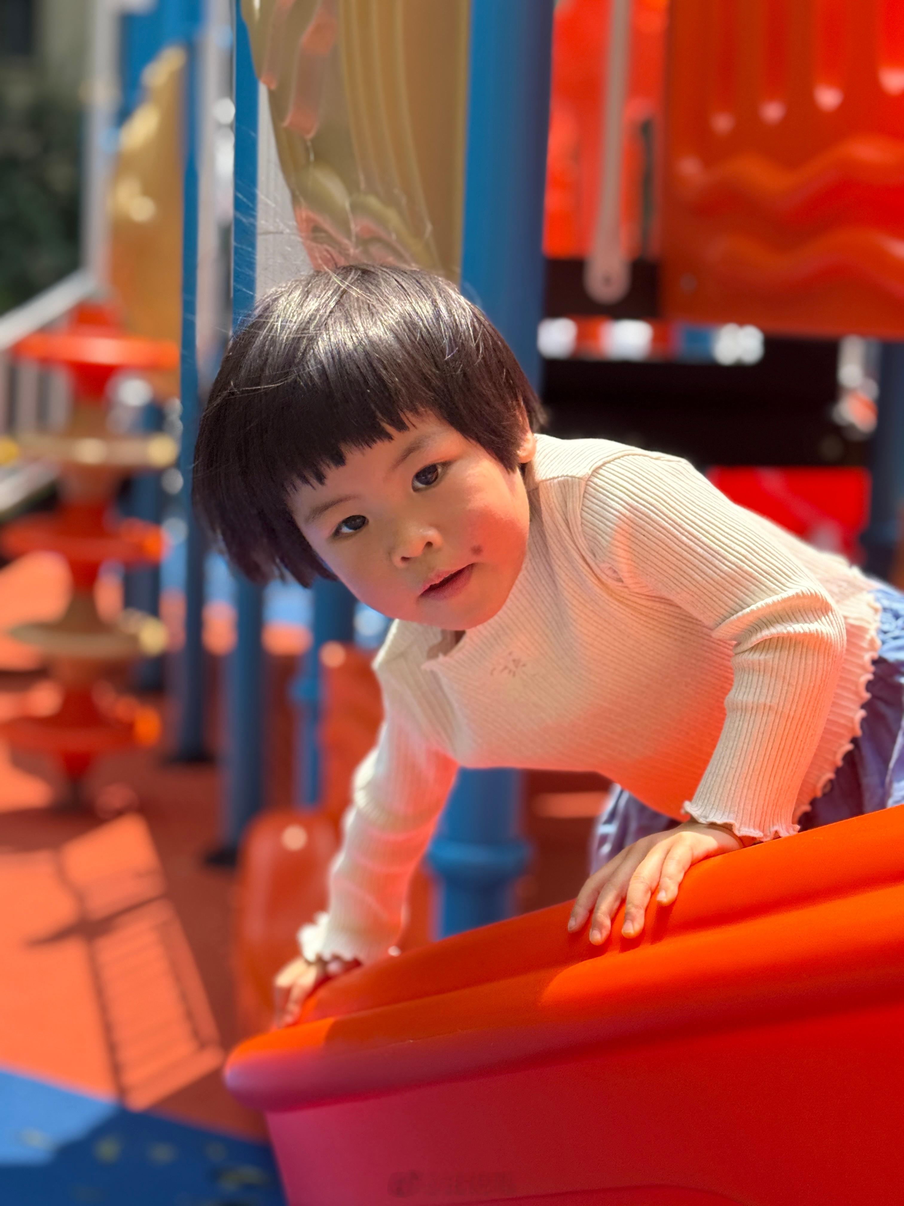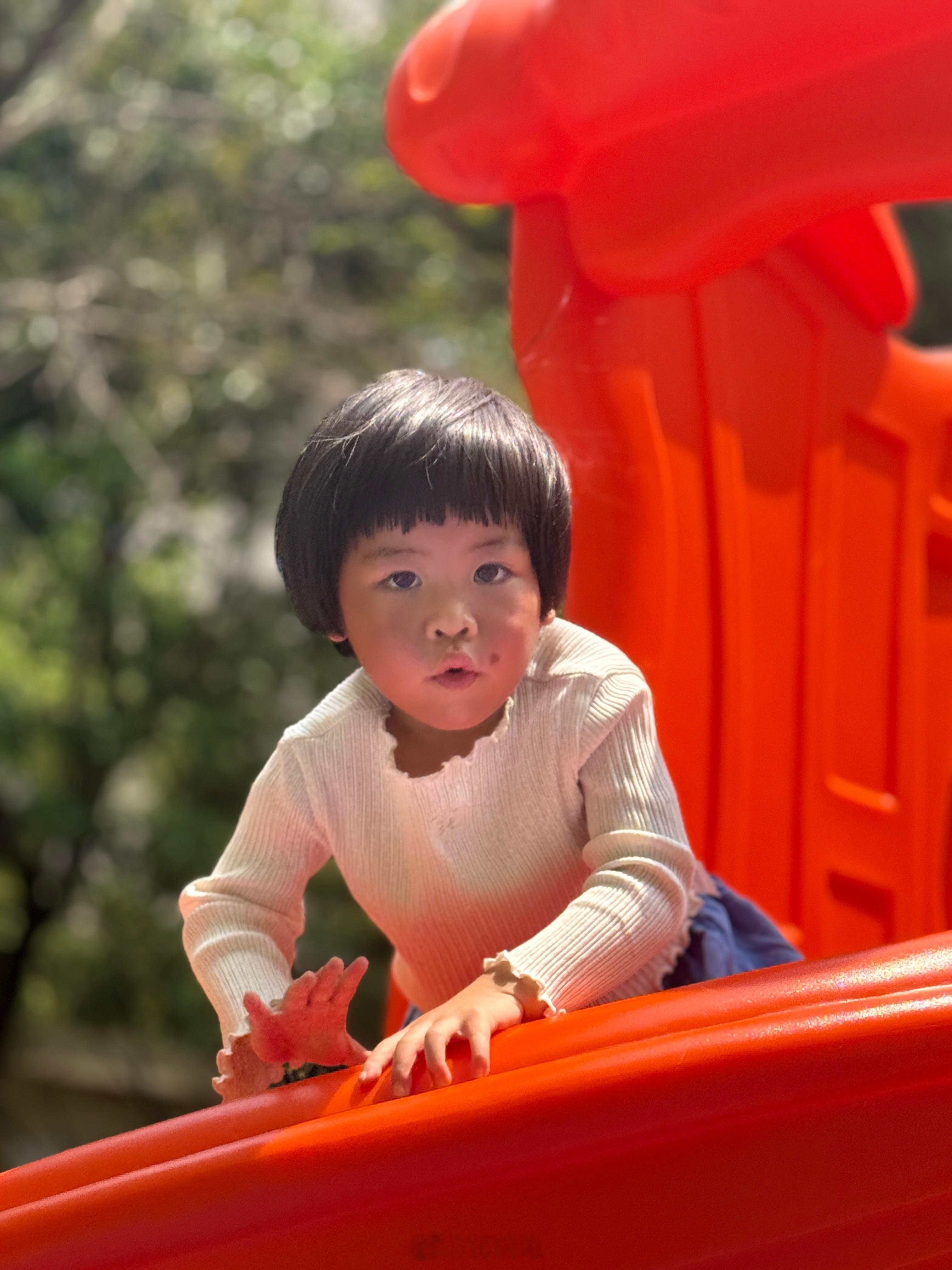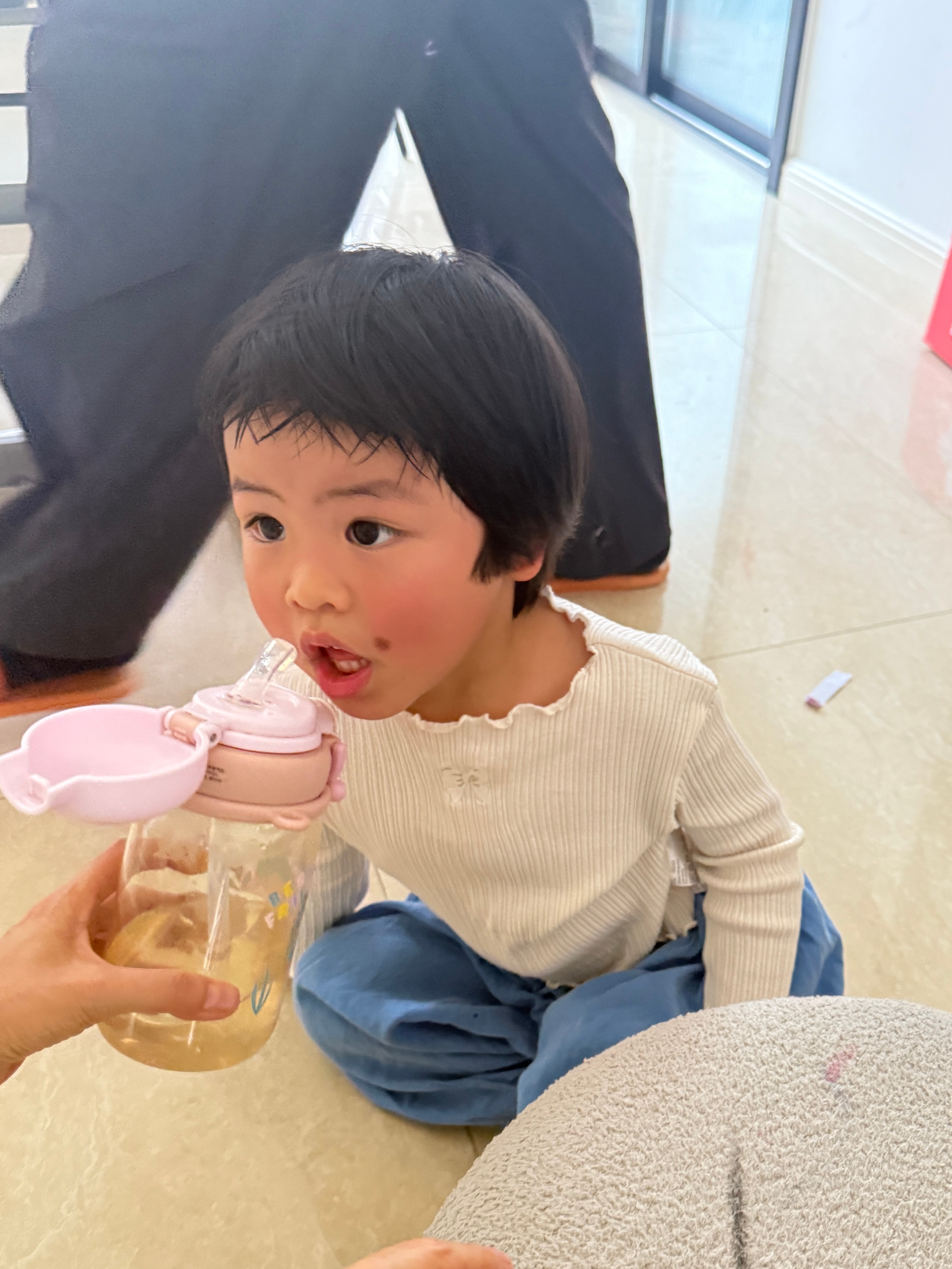 厦门已经是夏天了,户外玩一会儿球宝就变成了红色