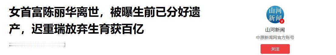 陈丽华曾立遗嘱:儿女每人100亿,余下归“唐僧”老公! 2026年4月7日,富华集团发布讣告,85岁的陈丽华在北京病逝。消息一出,各界人士纷纷哀悼。 可是身家四百七十亿的正黄旗世家后裔,钱怎么分,太抓人眼球了。 4月7日,随着富华集团的一声公告,85岁的“紫檀女王”陈丽华在北京走完了她传奇的一生。 她走后,留下了一个惊人的财富数字,但真正让全网议论纷纷的,是她那份分量极重的遗嘱。 陈丽华把手里的生意和宝贝分成了两摊:家里的几个孩子,每人分到了起步100亿的家产,还有稳稳当当的商业帝国接力棒,而陪了她35年的丈夫迟重瑞,则分到了两座紫檀博物馆,估值大概在200亿左右。 这份遗嘱一亮出来,网上说什么的都有,有人觉得迟重瑞这下可算“熬出头”了,毕竟顶着“吃软饭”的名声过了大半辈子,最后拿到了这么大一笔补偿,也有人觉得陈丽华算得真精,把能生钱的酒店、写字楼都给了亲骨肉,把那些只能看、难变现的木头疙瘩留给了外人。 可陈丽华真是一时糊涂或者偏心眼吗?你要是真这么想,那就太小看这位从裁缝一路杀进富豪榜的老太太了。 陈丽华这辈子算账从来没出过错,她心里比谁都明白,商业帝国和文化博物馆完全是两码事。 富华集团底下几百家公司、酒店和传媒业务,那是一台巨大的赚钱机器,这种重资产要是交给外人,底下的老臣子和亲戚谁能服气?只有流着陈家血脉的亲骨人往那一坐,这套庞大的体系才能不乱套地转下去。 所以,把公司给孩子,那是为了给企业上保险,也是为了守住陈家的根基,这根本不是偏心,而是最理智的商业传承。 再说留给迟重瑞的那两座博物馆,那可不是普通的房子,那是陈丽华半辈子的心血和理想,是她用无数金钱和时间浇灌出来的文化图腾。 这种东西没法拿到市场上像商品一样拍卖,真要卖了,那是对陈丽华一生追求的践踏,她要找的接班人,不是看谁有钱,而是看谁懂她、谁能耐得住寂寞去守着这些老物件。 迟重瑞恰好就是那个最合适的人,当年他演《西游记》里的唐僧红透半边天,是实打实的顶流,1990年跟陈丽华结婚时,两人其实是各有所长的结合。 这35年来,外界总用俗气的眼光看他们,觉得迟重瑞活得憋屈,其实,他退出演艺圈是为了分担家务,去直播、去巡视物业,那都是夫妻俩的分工。 他们两口子的相处模式,普通人确实有点看不懂,互相称呼对方为“您”,说话客客气气,看起来像在演戏。 但这就是人家老夫老妻之间最高级的尊重,不靠那种一时的激情,靠的是几十年的信任,陈丽华把博物馆交给他,不是觉得他穷要补偿他,而是相信这世界上只有迟重瑞能守住这口文化气。 很多人还在那儿算计谁多拿了100亿,谁少拿了钱,其实陈丽华算的是“责任”,孩子们扛起的是赚钱养家的担子,迟重瑞扛起的是文化传承的标尺。 一个是物质上的接班,一个是精神上的继承,这根本不是同一道题。 所以说,迟重瑞拿到的不是一份可以躺平的遗产,而是一份沉甸甸的托付,守住那些紫檀木,比做生意要难得多。 陈丽华这份遗嘱的高明之处就在于,她不仅把财富分了,还把每个人都放在了最合适的位置上。 对儿女,她尽到了母亲的责任,完成了权力的交接,对老公,她交出了真诚的信任,留下了最后的体面,对社会,她保住了那些珍贵的文化遗产,没让它们变成换钱的筹码。 面子和里子,她全都护得好好的,这才是这位“紫檀女王”最后也是最厉害的一招。 那些还在替迟重瑞算账的人,永远不会明白,接过一个女人半辈子的理想,那是比拿多少现金都要贵重的情分。 对此你怎么看? 信源:山河新闻