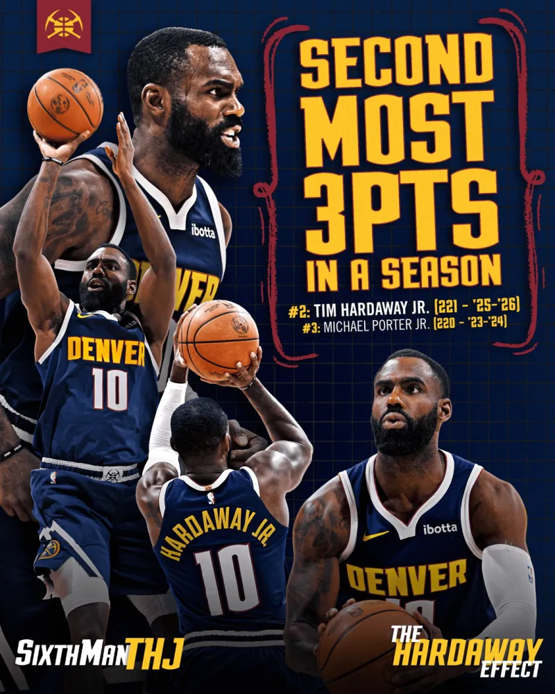 掘金主帅大卫-阿德尔曼评价小蒂姆-哈达威:“他能带动球队打出高潮。”“他的开火权亮到了最绿灯……我对他出手投篮非常放心。”