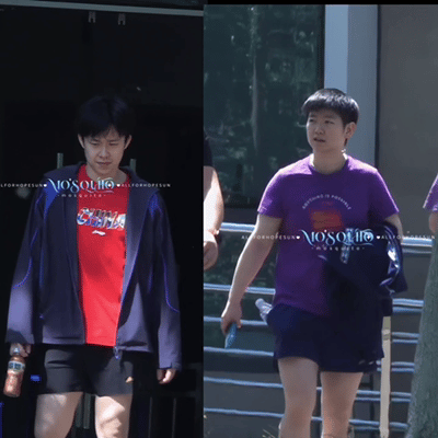 4.9日,莎莎和楚钦都开始训练了,都理发了,头发短了,一个漂亮一个帅气。 结束了澳门世界杯的比赛,莎莎和楚钦夺得了世界杯的男女单打冠军,非常棒! 回到成都封训,休息了两天, 今天开始恢复训练,状态都非常好哦。 楚钦和小牛,体能教练,队医一起去练习体能, 莎莎和任姐,翔哥结束体能训练回来。 健康涨球,伦敦世乒赛一起加油哦。