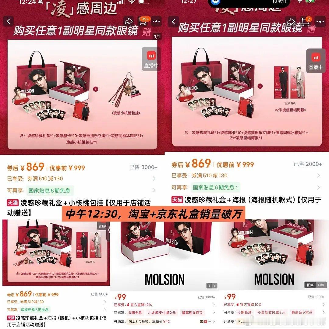 张凌赫陌森官宣3小时,淘宝和京东的礼盒xl已经1万多了,同款礼盒是今天上午9:30才上架的(不包括抖音)是要买同款墨镜才送礼盒的