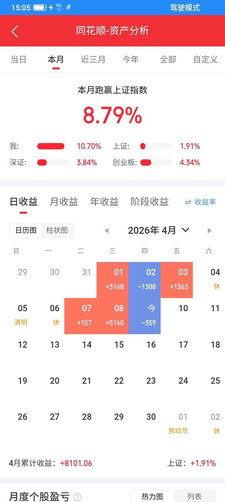 2026.04.09,昨天全面上涨,今天就猥琐了,全面下跌,持有的股票只有一只高开低走,收盘还勉强翻红,其它的都大跌,还好重仓的etf,继续上涨,不然今天又亏多了。 这几天加仓的都错了,太贪心了,总想加大仓位,赚多一点,但是浮盈加仓,一把亏光,今后不再加仓,昨天加仓的延江,今天高开低走,上午还一直想上涨,但是不知道为什么,下午突然跳水,几百几千几万手的大卖单疯狂卖出,从27块多,很快砸到24元,一下子就从赚400多块钱到倒亏了200多块钱,不该加仓。昨天上涨了一点点,今天大跌了十多点,连本带利亏回去了,持有吧。 科拓也是差不多,不该加仓,今后不再加仓了,输赢就一次吧,今天低开低走,最低跌到17.83元,收盘反弹了一点点,昨天上涨一点点,今天大跌。 天富也是,昨天反弹一点点,今天就跌回去了。 钢琴昨天也没有上涨多少,今天大跌。 科创etf今天下跌了一点点,还是网格交易,收盘以0.850元买入600股。 通信设备etf继续逆市上涨,低开高走,下跌想买得更低,没有等到就反弹上涨了,上涨中网格交易自动以1.390元卖掉1000股,卖掉之后继续上涨,最高冲到1.514元,然后冲高回落,收盘上涨了0.019元,上涨就慢慢卖出,下跌再慢慢买入,收盘以1.507元,卖掉2000股。只剩22500股了,明天继续上涨就继续卖出,下跌就重新买回来 。 今天从赚几百块钱,到收盘倒亏了几百块钱。今天总市值5.46万元,总资产7.66万元,还了2000元贷款,还欠2万贷款,今天预估利息13元。净总资产5.6万元,今天总体账户亏损360元,还好,不是很多。减少操作,少一点止损,耐心等待。