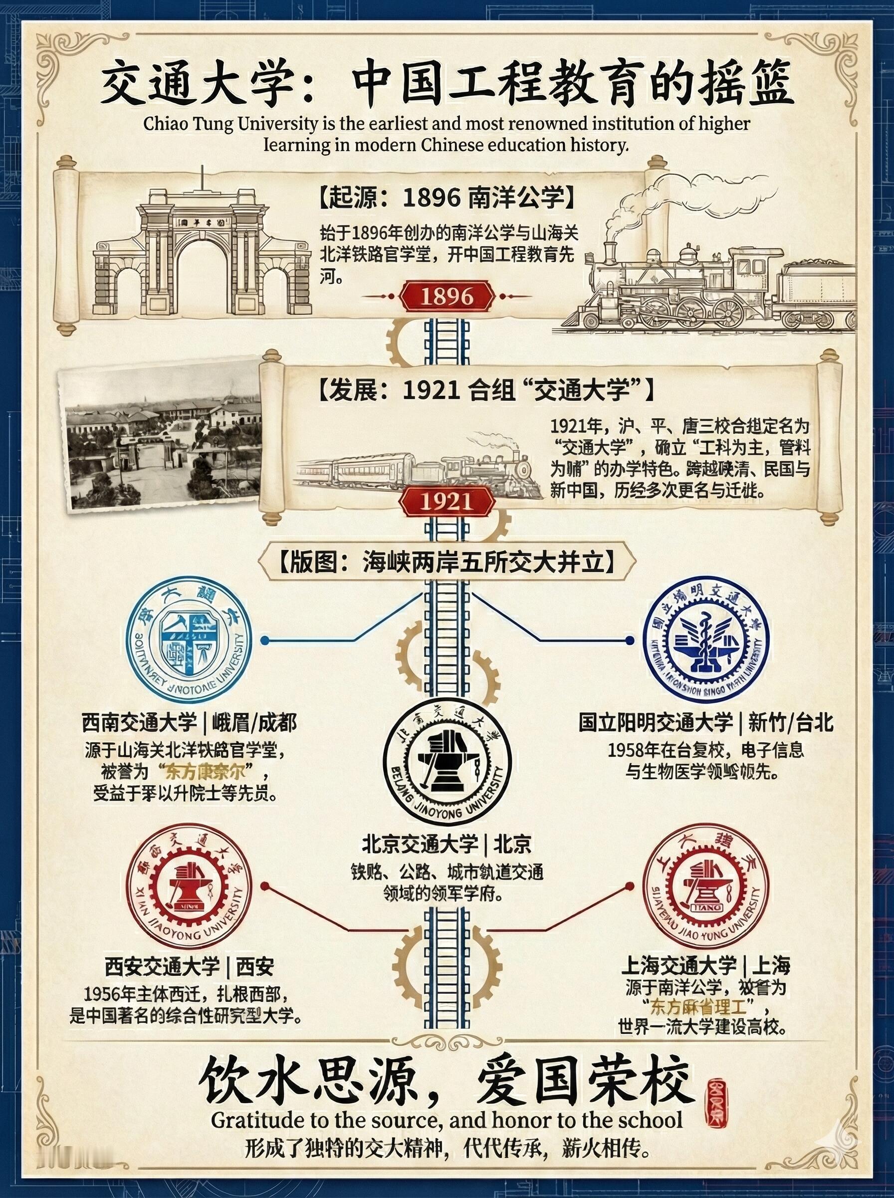 百年交大分分合合教育史,交通大学130年校史,是中国现代化教育的缩影。上海交大正是从其中而来一家三代毕业于同所百年名校一家老中青三代是上海交大校友