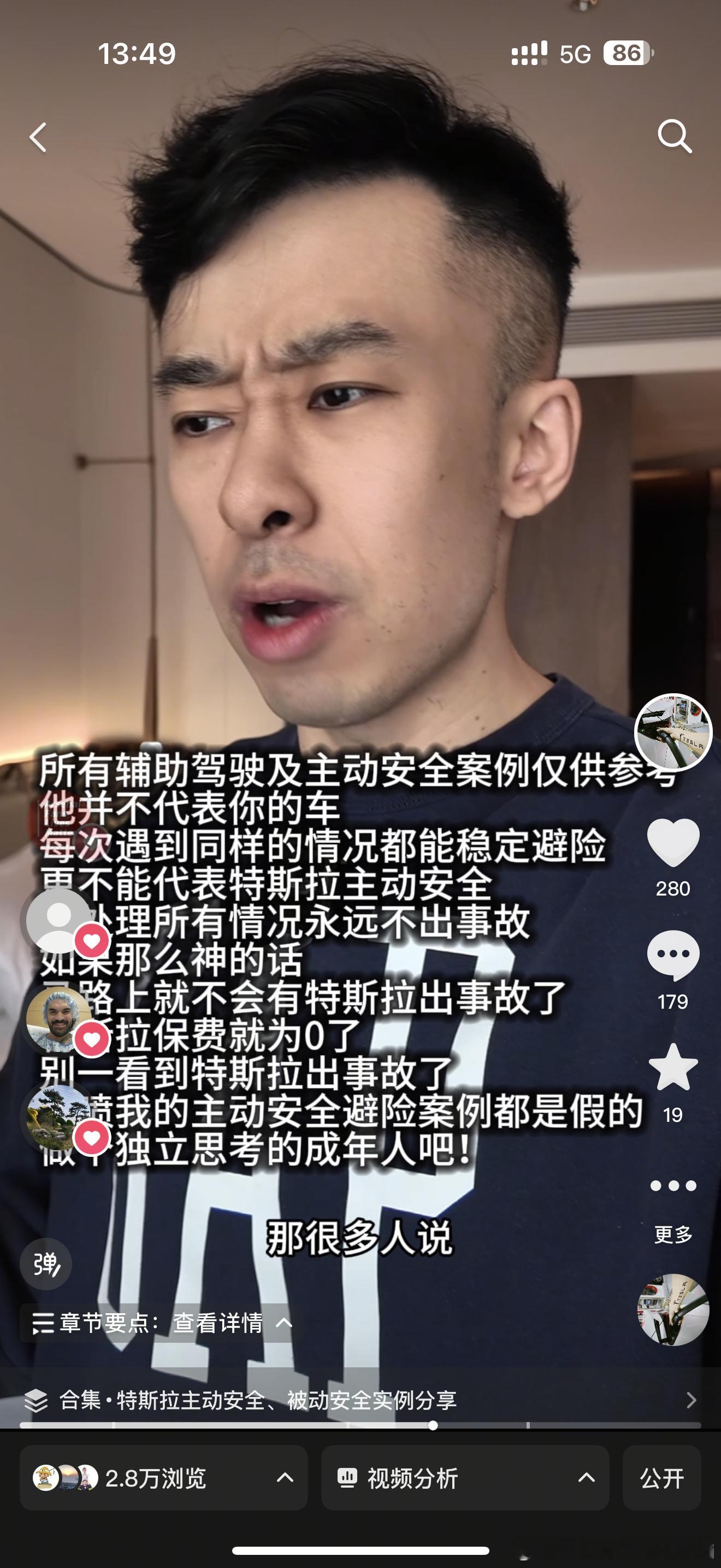 我每条视频都会苦口婆心的提醒大家,所有主动安全辅助驾驶案例仅供参考,他不代表你的车遇到所有情况都能避险,如果所有事故都能避免特斯拉的保费就为0了,开车请自己把好方向盘观察好路况。