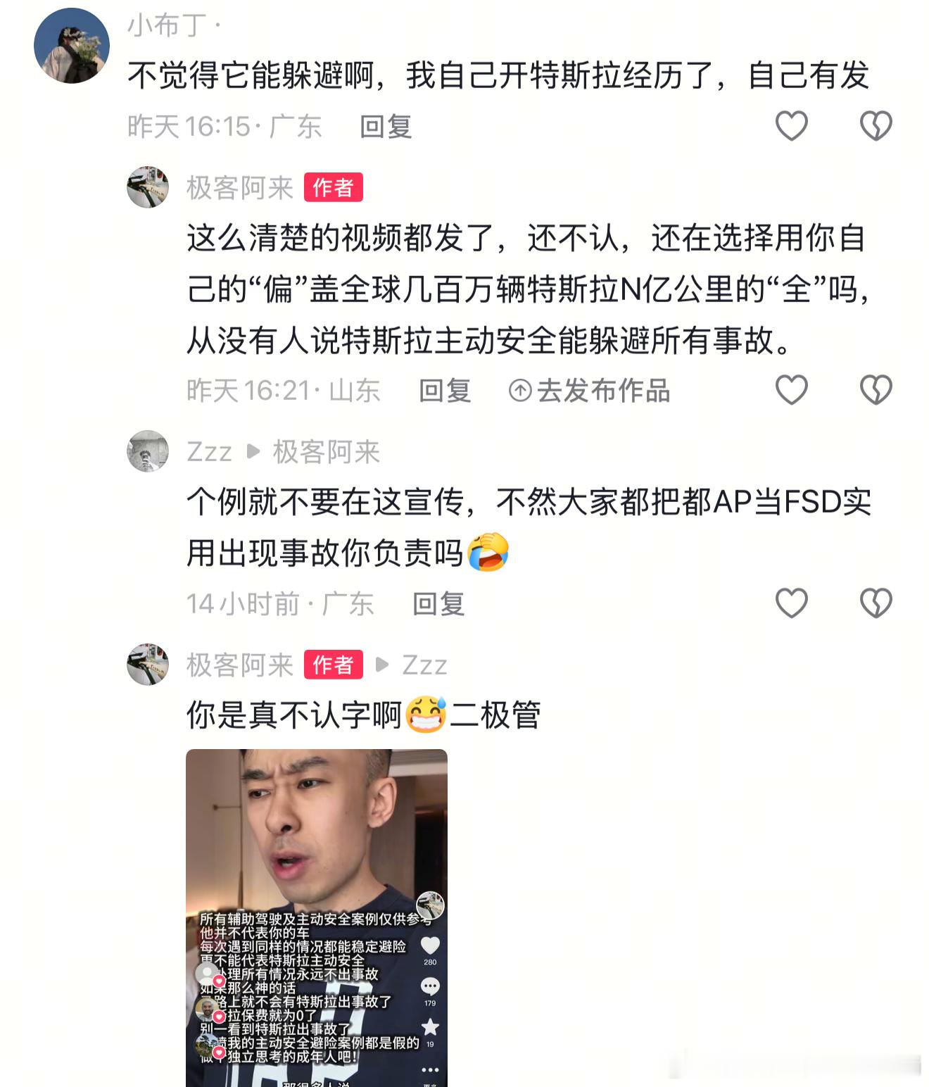 2.看我发的有些躲避成功的案例,就觉得所有场景都能躲避,他的车无敌了,然后等自己出事故以后就来骂车企、骂我、骂我发的视频都是假的。