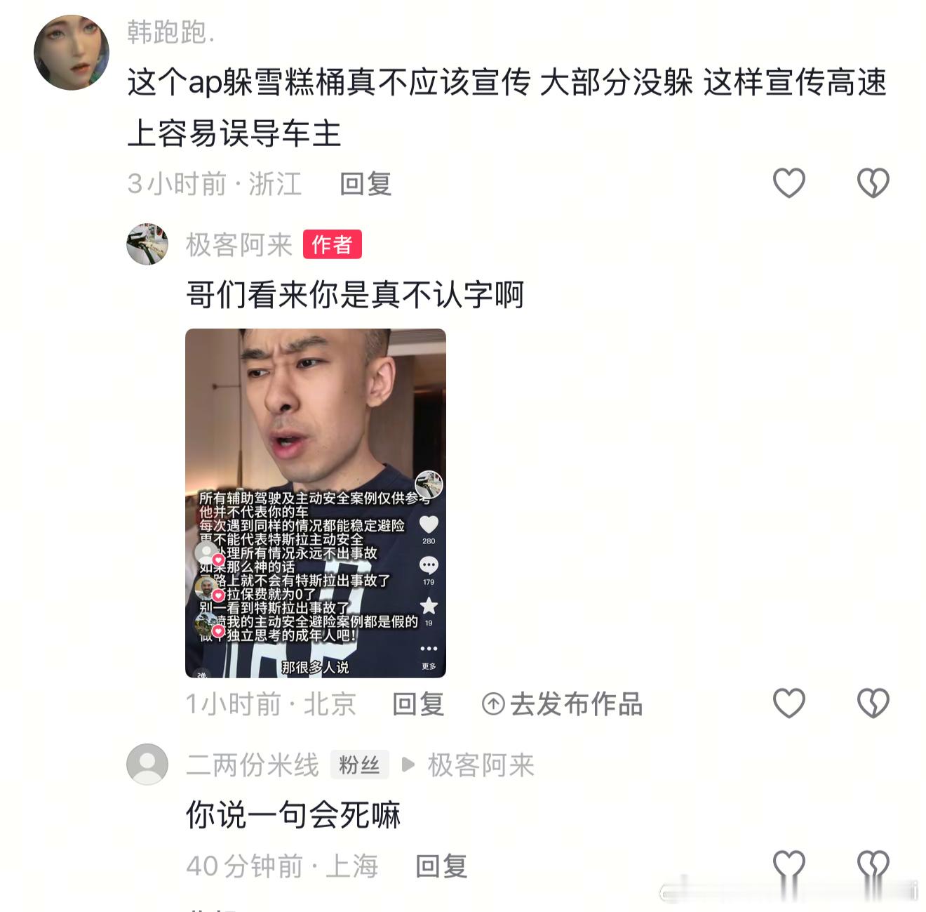3.还有人说不是100%避险的功能不要拿出来宣传… 那目前每家车企的主动安全都不能100%避险,每家车企的辅助驾驶都不能完全0接管,那还不让车企发布会宣传主动安全和辅助驾驶了 ? 宣传自己的进步了? 发布会人家都把辅助驾驶主动安全当重点来宣传好吗?!甚至每个车企都不能保证每次车祸车里的人都活下来,每次发生碰撞车辆都不烧,那咋的,车企不能卖车了?